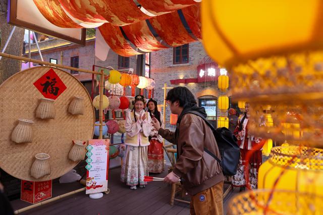 糅合传统风情的年味活动吸引游客参与。文汇报记者叶辰亮摄