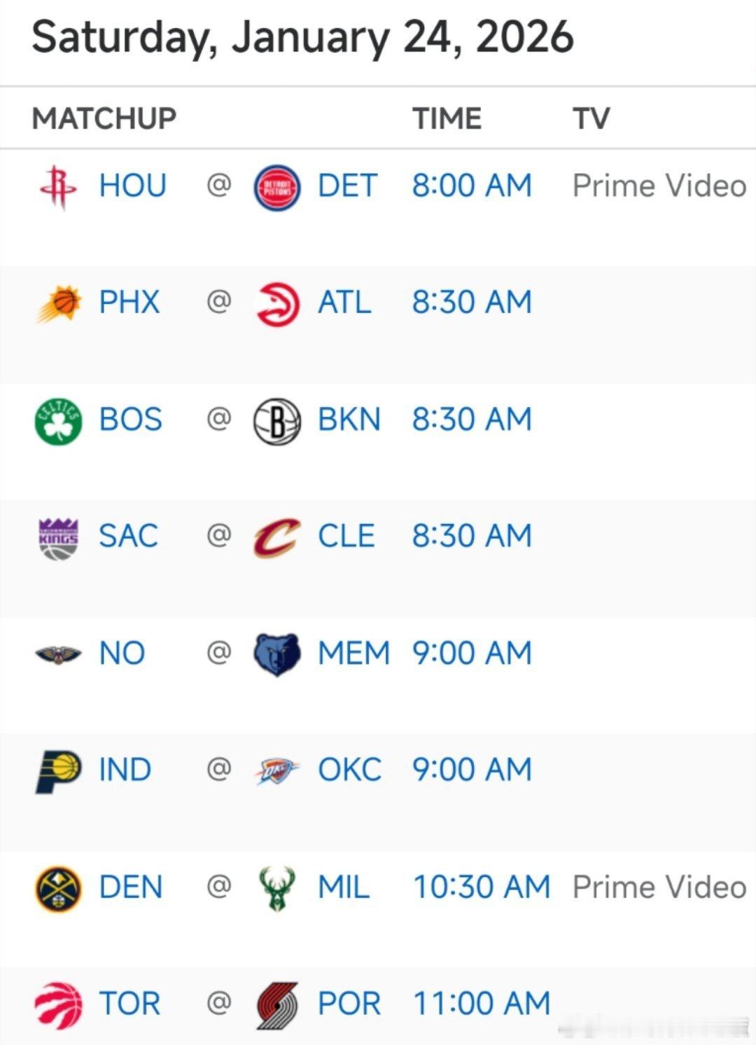 明日8场比赛预告🎬8:00 火箭vs活塞8:30 太阳vs老鹰10:30 掘金