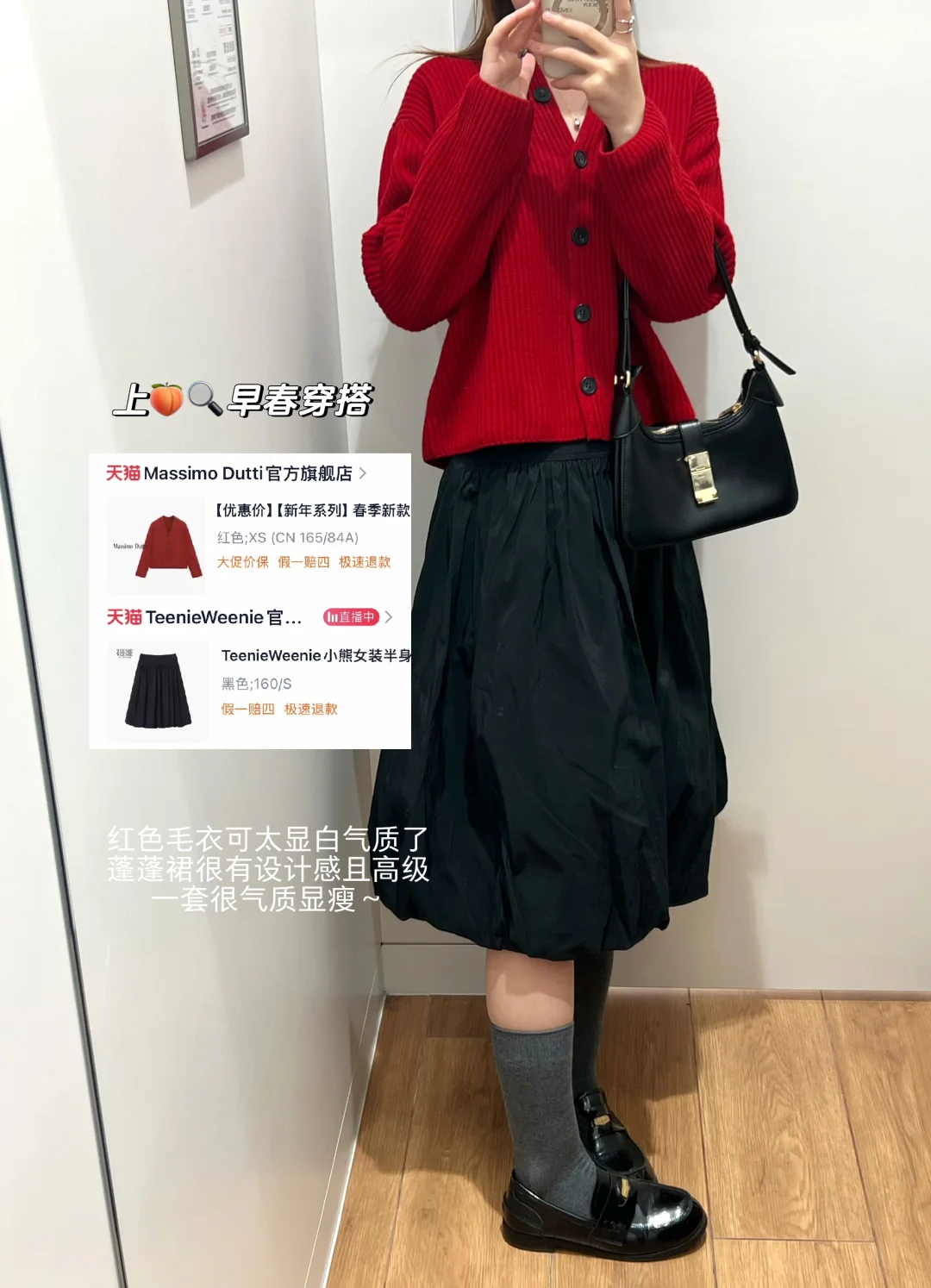 红色毛衣很显瘦显气色