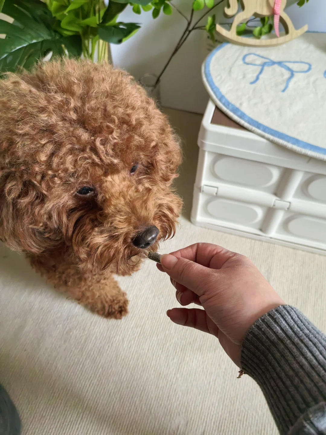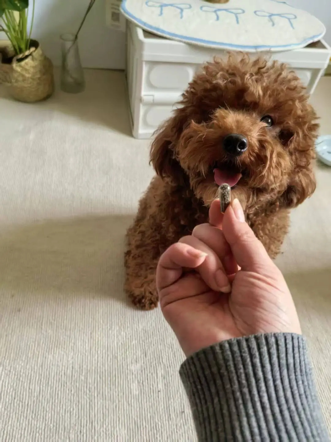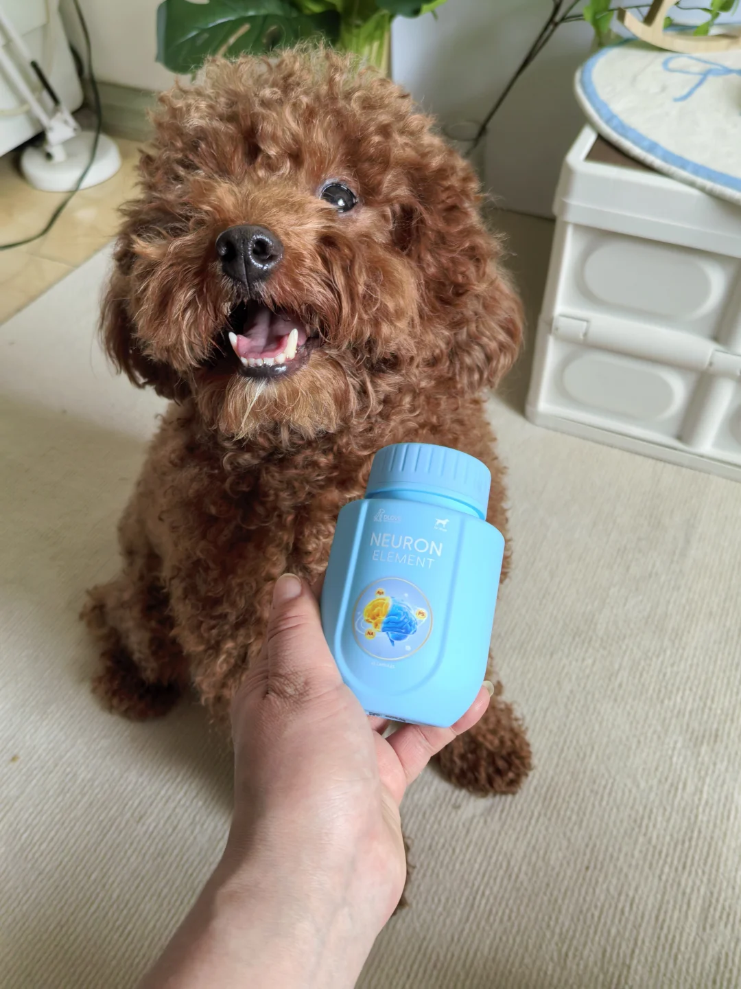 谁懂啊!我家五岁半泰迪之前一到夜里就突然蹦起来嗷嗷叫,我连觉都睡不安稳,一番查了才被告知可能是神经出问题发出的小信号,建议居家治疗后再观察看看。 搜了一圈,对神经养护的品不是人用的就是一些来路不明的,哪敢入手啊!最后入了DLOVE神经元,这个起码是宠物神经专用的营养品,抱着试试看没想到是吃完一段时间后真有用: 先是情绪稳了——色氨酸+酸枣仁这些成分把它的“小脾气”按住了,不会突然一惊一乍; 然后神经也在慢慢好——那个水溶性神经酸是真能焕活受损的神经元,相当于给大脑补“补丁”; 连身体都顺了——里面的维生素B12、叶酸这些还能调代谢,现在吃饭都香 现在夜里再也不用爬起来哄狗了,早上它还会摇尾巴贴我枕头边!家里毛孩子有类似情况的真的可以多留意下~