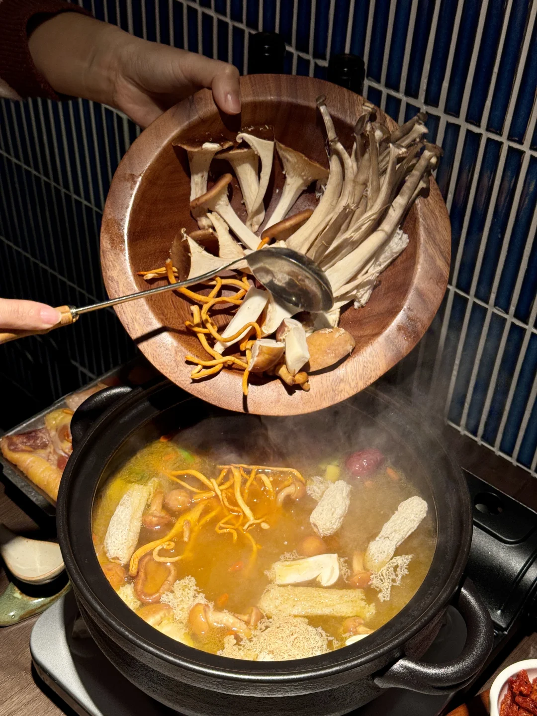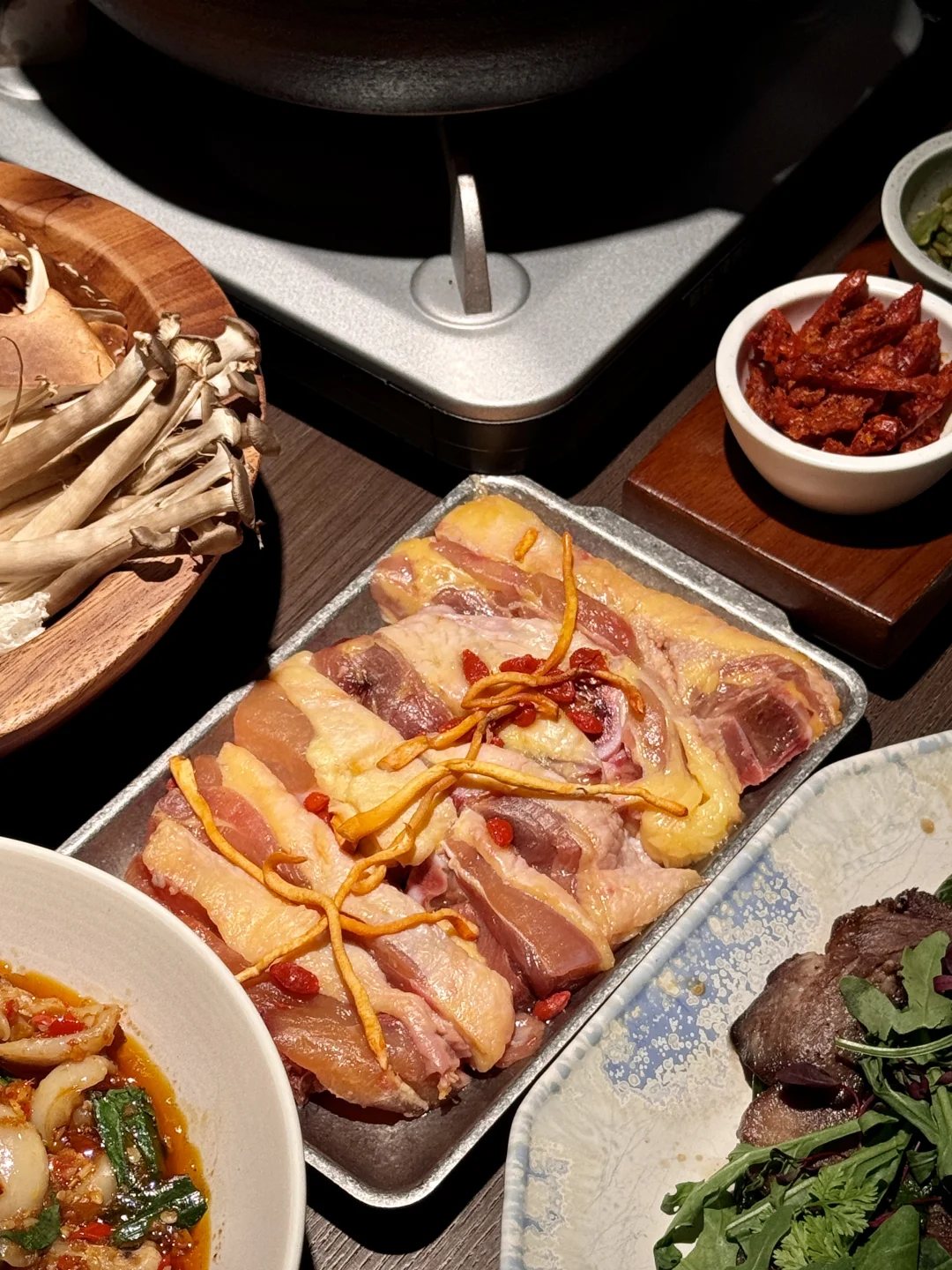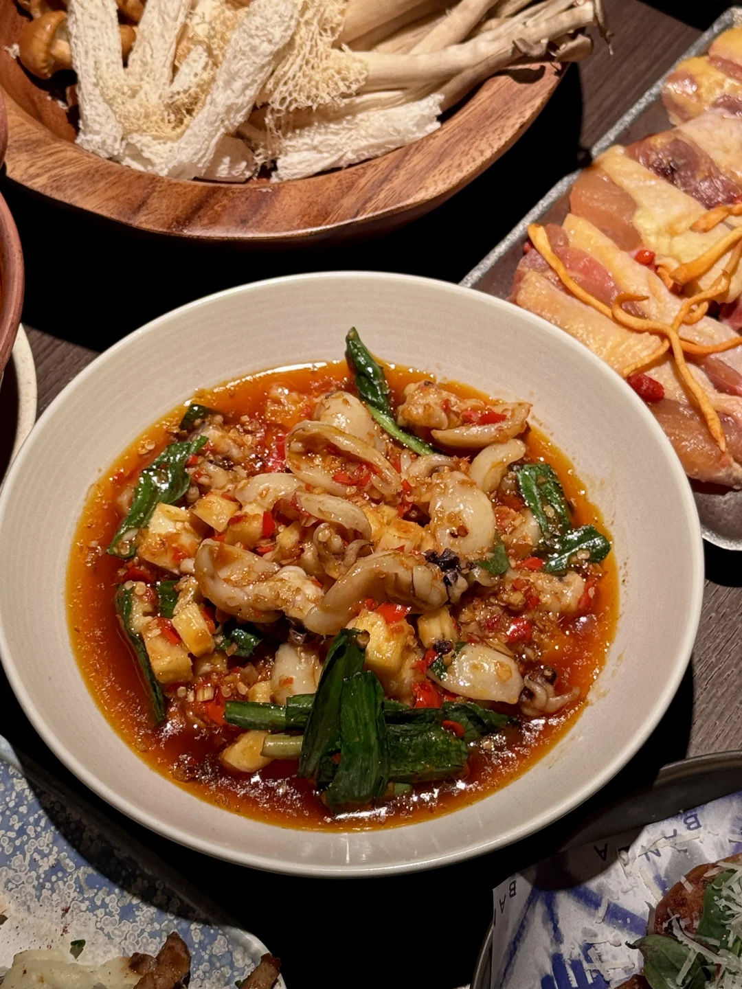 云南菜脑袋狂喜! 新品每道都戳心巴😭 昆明鲜菌土鸡汤必点!菌菇拼盘倒进沸腾鸡汤,咕嘟咕嘟冒着热气,鲜到掉眉毛,鸡肉炖得脱骨,喝汤喝到停不下来~ 傣家酱烤牛舌香辣够味,牛舌弹牙裹着辣酱超香;菠萝炝炒墨鱼仔酸甜清爽,墨鱼Q弹到咬不动停;虾泥脆油条外脆里嫩,酸辣口太上头! 酸汤手撕肉配土豆泥、小锅米线都是下饭神器,酸辣鲜香一口入魂~ 甜品闭眼冲!草莓布丁和红豆焦糖布丁牛奶冰,冰爽绵密,解辣又解腻,拍照巨出片! · 📍山野板扎(厦门万象城店)