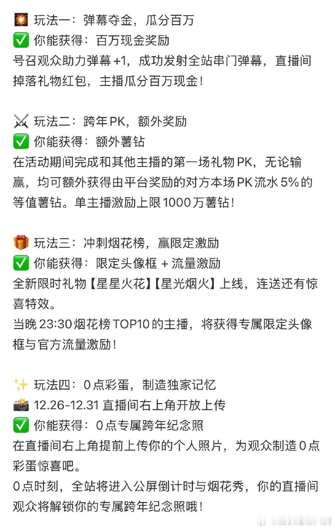 时间飞逝,2025年即将结束。打工人表示今晚实在没力气参与跨年活动。幸好小红薯准备了直播跨年专场,12点准时上线。新增了串门弹幕、礼物PK等新玩法,还有薯钻奖励和限定礼物特效。零点的个人彩蛋增添了仪式感。此外,晚上7点的“我们的跨年”直播也值得期待,可以和朋友一起在家跨年,感觉非常舒适。