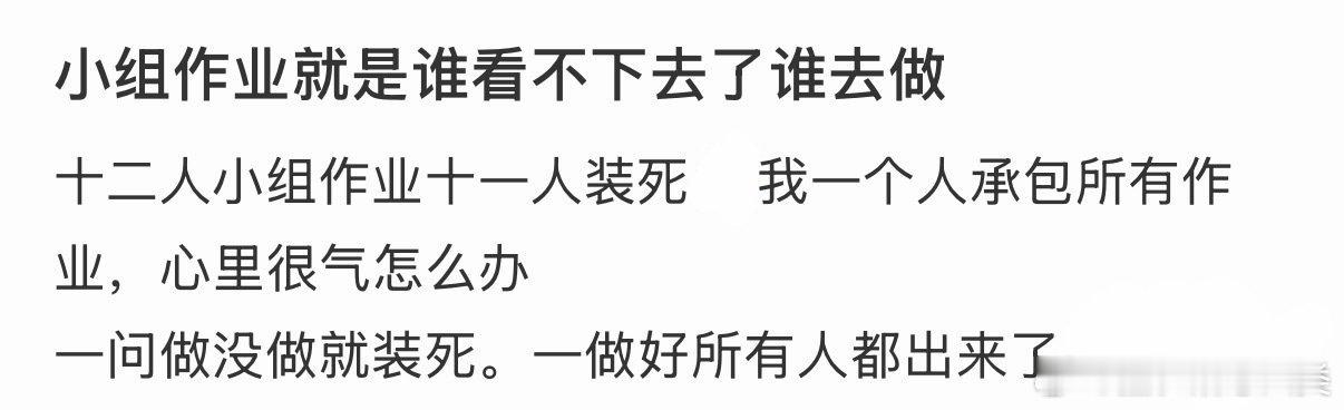 12人小组,11人装死,只剩我一人承担所有任务,感到极度不满。