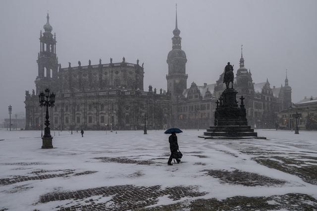 当地时间2026年1月9日,德国德累斯顿,寒流袭击欧洲多国,人们在大雪中行走。视觉中国图