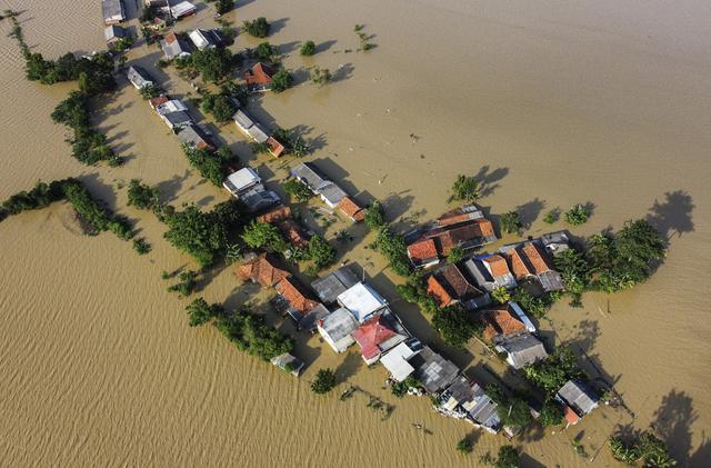 当地时间2026年1月19日,印度尼西亚西爪哇省卡拉旺县,村庄被洪水淹没。视觉中国图