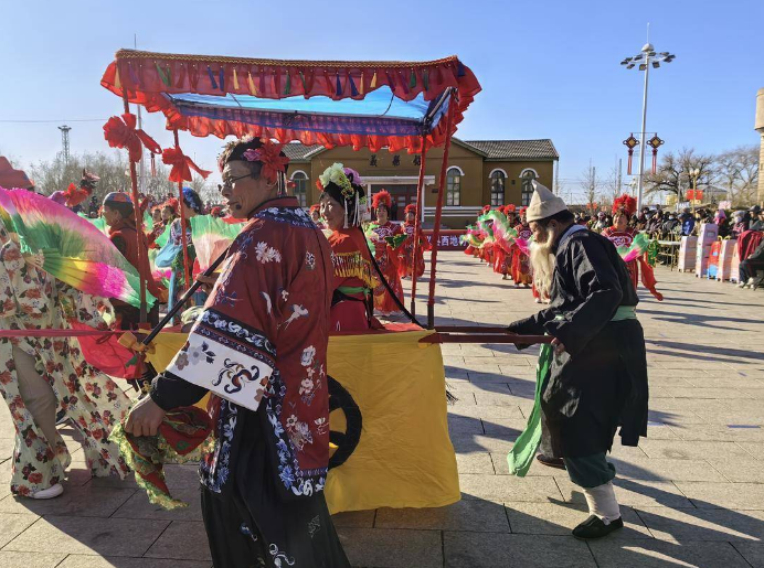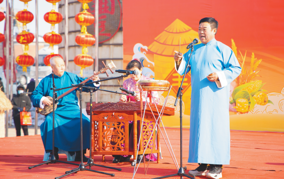 “我们团队有20多人,接到‘村晚’演出通知是2025年10月初,大家白天忙活计,傍晚练秧歌,用了一个多月练好这支舞。”11月10日,全国冬季“村晚”示范展示活动在锦州义县义州镇站前村举行,参演了舞蹈《小城秧歌情》的温丽萍告诉记者,这支充满东北风情的舞蹈并非来自专业演员,而是由城关街道的张淑华、九道岭镇的回璇、大定堡镇的杨素梅等乡镇普通百姓出演。在当天的演出中,还有不少表演者来自周边村屯。表演鼓吹乐的付永鑫是九道岭镇罗家屯村人,表演京剧《华容道》选段的李国军是聚粮屯镇海良屯村人,表演评剧《乾坤带》选段的刘志忠是大榆树堡镇人,他们凭借着对生活和艺术的热爱,登上了“村晚”舞台。