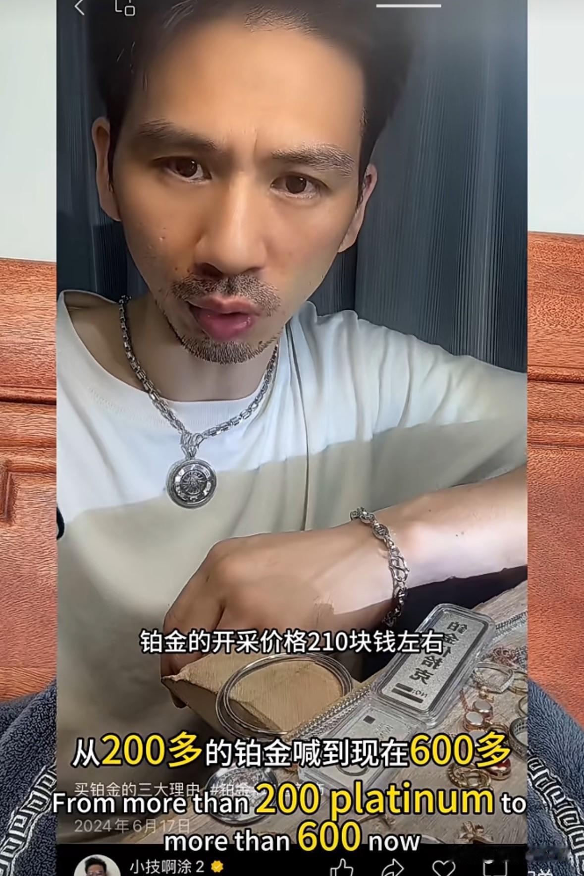 去年2月份,第一次听他喊,铂金220左右一克,已经接近开采价格了,你们为什么不买。 当时很多人都说,铂金没有金融属性,买了也卖不出去。 有人相信,买了,一年时间不到,眼瞅着翻两倍了,反正我比较容易相信人,同时,这么多年我也看到了铂金的辉煌和衰落到无人问津,我也相信,既然有人买,就能卖出去。 我之前的手镯,就抵价换了黄金,到处280一克买的,180换出去的。我一点不亏,因为我换的黄金, 在427一克的时候,我买了一个戒指,就是在他这里买的。我胆子大,我相信,如果一个人可以在平台上做视频一年,他绝对不是骗子, 现在,铂金600多一克了,当初427买的时候我还感觉贵呢,现在后悔到处没多买点。 实际赚钱信息都是来源于专业人士的推荐,当然了,自己也要有判断能力,才有可能赚到钱。我就是后悔当初自己的执行力不够。 我能看到800多一克,拭目以待吧。