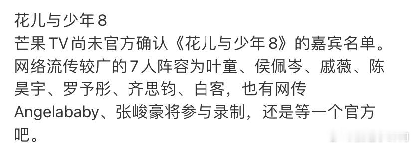 花少8打破奇看偶不看魔咒感觉网传的阵容都可以打破花少奇看偶不看的魔咒诶期待期待!!?!花儿与少年8