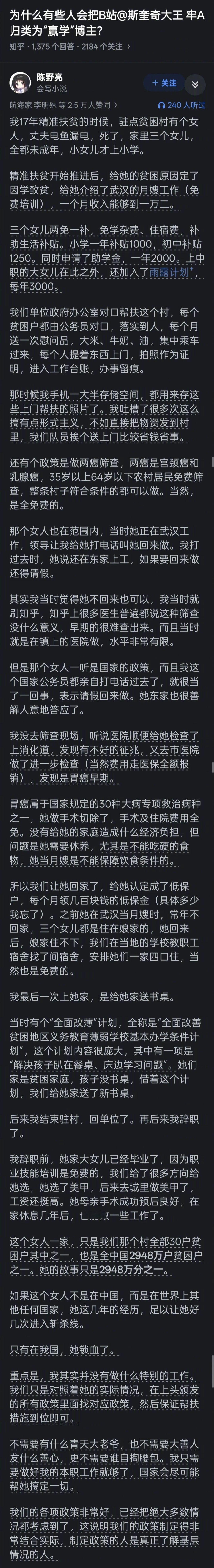中国公知经常说一句话“不要宏大叙事,要关爱具体的人”,但是,现在讨论美国的斩杀线,中国公知又装死不愿意关爱具体的人了,美国流浪汉在他们眼里又不是具体的人了。中国扶贫才是真正关爱具体的人,中国扶贫就是人类文明历史上的伟大壮举,美国再发展500年,也不可能会扶贫。