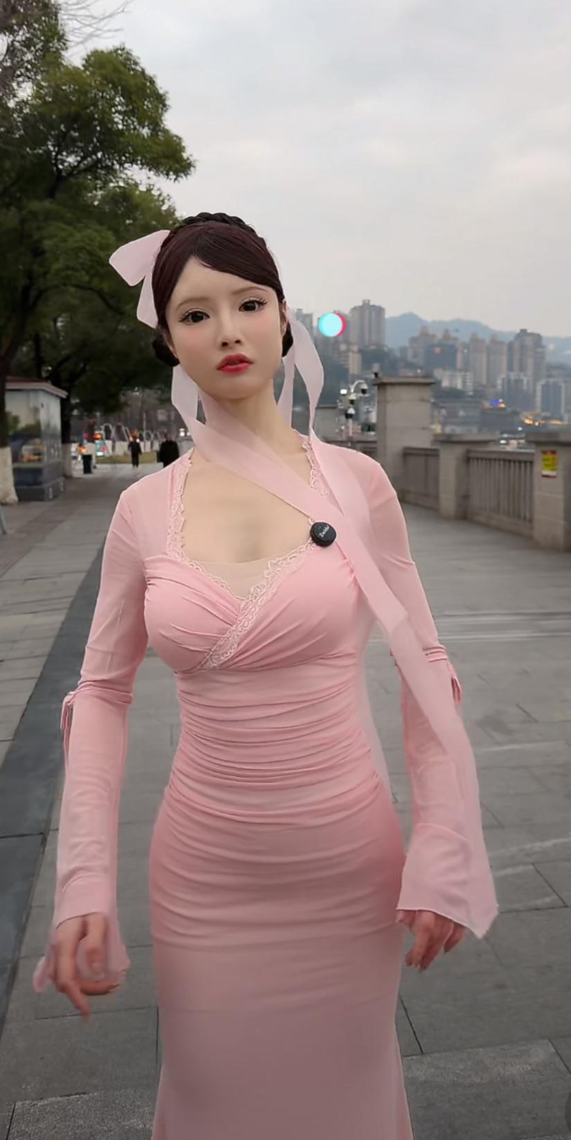 这是一位在街头进行表演的创作者,她是抖音上的网红“火锅机器人(接表演🎭)”(本名娇娇),并非真正的机器人。 核心信息 • 身份:重庆火锅店老板娘,同时也是一位模仿领域的自媒体创作者。她通过模仿机器人的表演在网络上走红,被称为“火锅机器人娇娇”。 • 表演特点:她以机械感极强的动作、长时间不眨眼的神态,以及高度仿真的妆容和造型,模仿出酷似机器人的效果,常常让路人误以为是真的AI机器人。 • 走红原因:她在火锅店以机器人形态为客人服务、在街头进行表演的视频被大量传播,加上登上央视节目,吸引了大量粉丝关注,抖音账号粉丝量已超56万。 服装与场景 • 图中她身着粉色古风改良服饰,搭配白色飘带,是她街头表演的造型之一。 • 背景是现代城市街道与高楼,这种“古风机器人”的反差感也是其表演的看点之一。