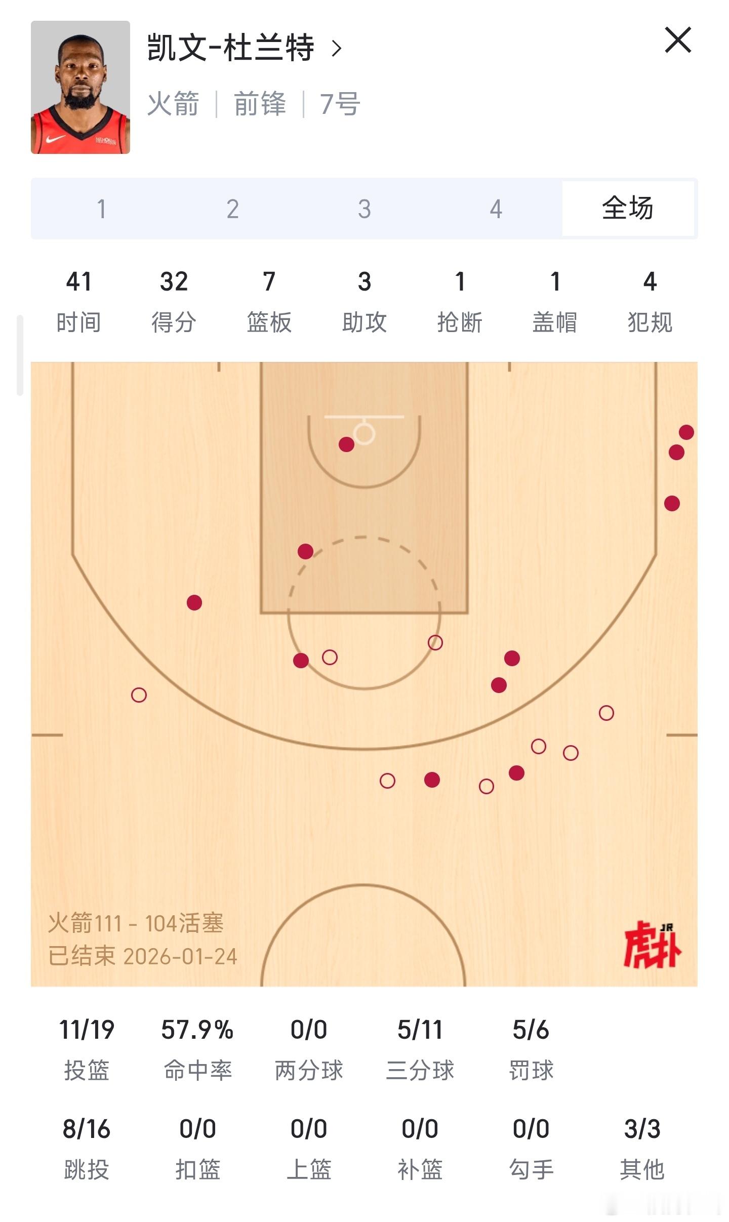 火箭战胜活塞杜兰特镰刀挥了又挥 面对76人,出场44分钟,36+7+3面对活塞,出场41分钟,32+7+3老同志虽然还有油,但也不是这么用的啊