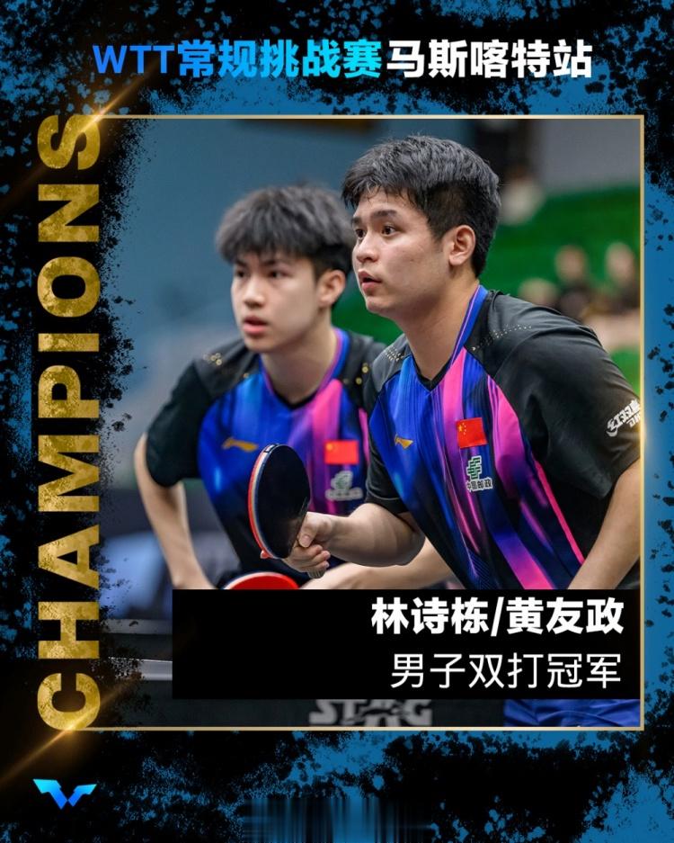 WTT常规挑战赛马斯喀特站男双决赛:林诗栋/黄友政夺得冠军