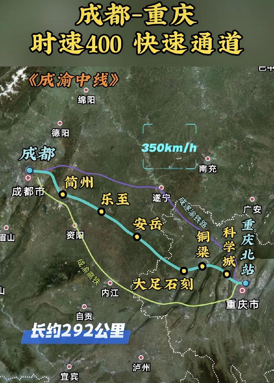 成渝的小伙伴们,成渝中线高铁要来了! 截止2026年1月18日,成渝中线高铁四川段的最后一孔箱梁在资阳安岳县制梁场成功浇筑完成,这意味着四川段的箱梁预制任务已经全部收尾,为后续架梁和铺轨施工扫清了关键障碍,也让这条“成渝400公里时速快速通道”的通车目标又近了一大步。 这条全长约292公里的高铁,是成渝间第三条高铁通道,部分路段设计时速400km/h。从成都出发,途经简州、乐至、安岳、大足石刻、铜梁、科学城,最终抵达重庆北站。 按照规划,成渝中线高铁预计2027年建成通车。届时,成都到重庆的通行时间将直接压缩至50分钟左右,比现在最快的成渝高铁还要再快半小时,真正实现“一小时双城生活圈”。 这不仅是一条高速通道,更是推动成渝双城经济圈建设、完善西部高铁网络的关键一步。未来,无论是两地通勤、商务往来,还是沿线旅游,都将迎来质的飞跃。 让我们一起坐等成渝中线高铁早日建成通车吧!