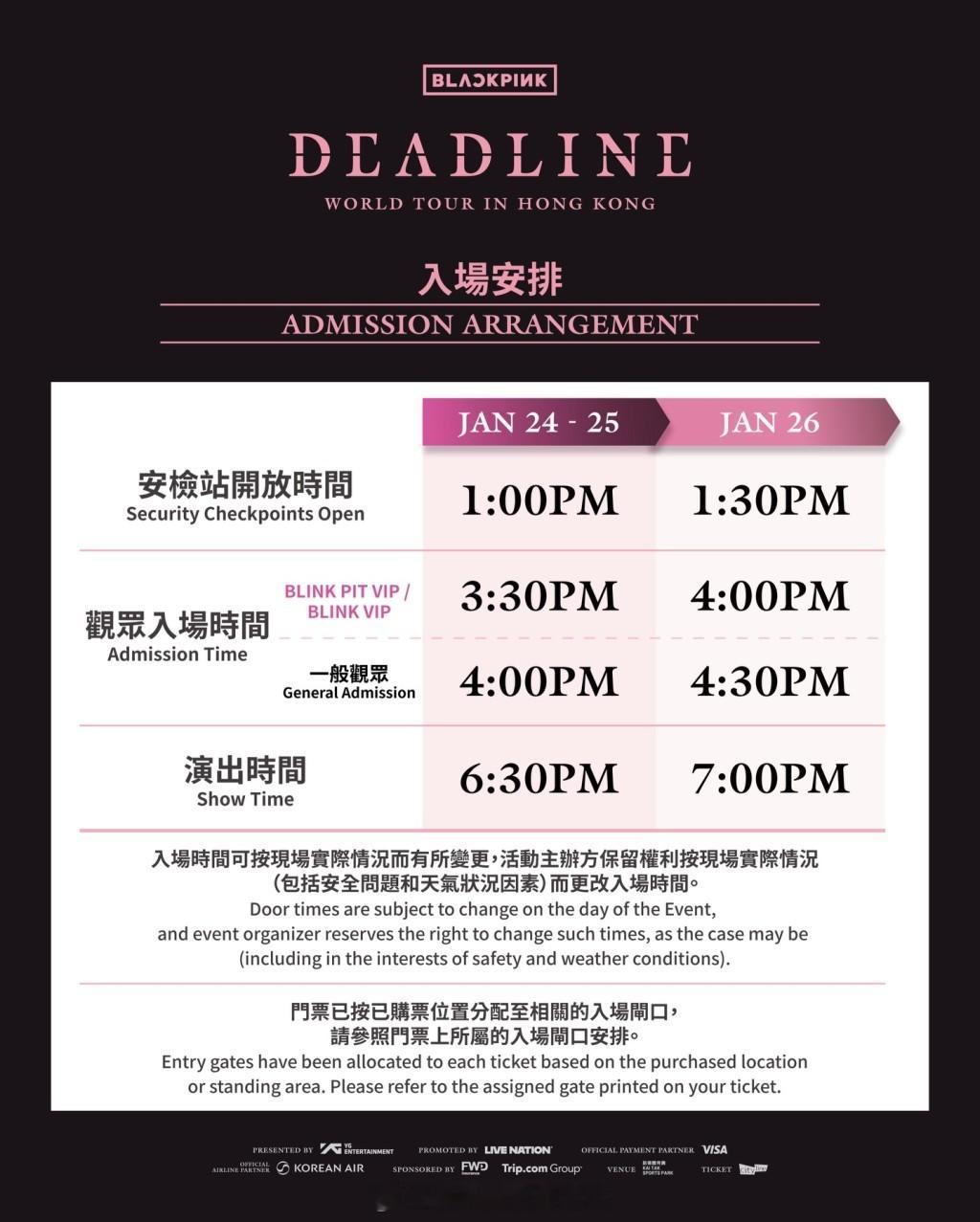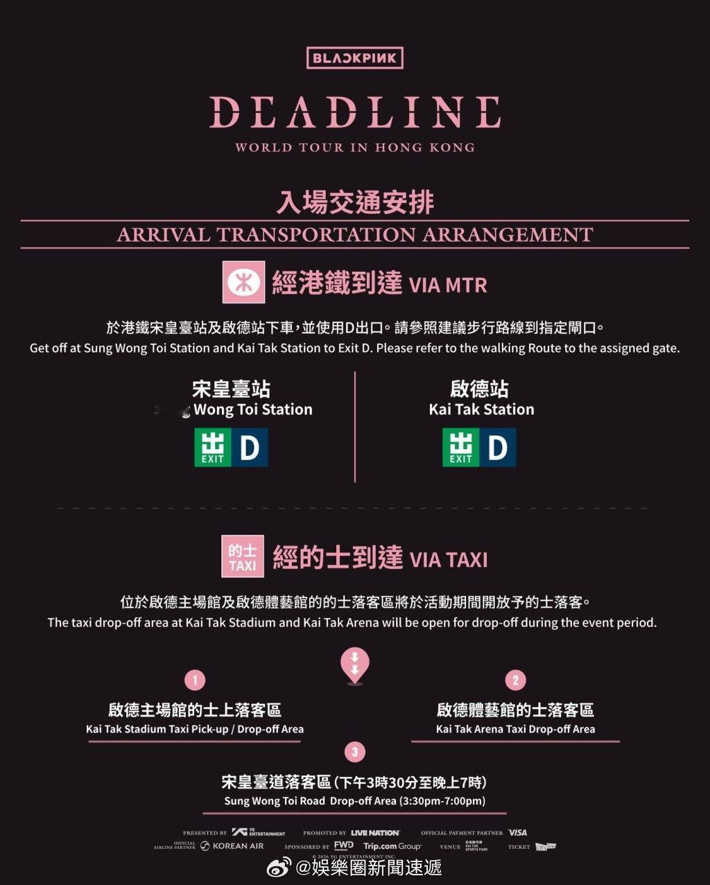 国际大都会香港 国际金融中心香港 「(有視頻)BLACKPINK 今起開唱燃爆啟德..入場資訊/快閃店/打卡點一文睇清 … 大公文匯全媒體報道,啟德體育園將迎來一場席捲全港的粉紅風暴,韩国 女團BLACKPINK世界巡迴演唱會將於今晚(24日)至26日在九龍啟德主場館上演。大文為粉絲們整理了匯聚最新消息的演唱會攻略,一文帶你睇清交通安排以及各大打卡位,幫助各位粉絲做好攻略,盡情享受這場全球矚目的音樂盛事!是次演唱會特意在會場設置活動專區,帶來一系列的打卡場景、專屬體驗及應援小物。各位BLINK們,記住提早入場。入場守則入場人士須注意攜帶物品的限制,特別是所有專業相機、攝錄機、運動相機、360度相機、可拆式鏡頭相機、長焦鏡頭、手機可拆式鏡頭、手提電腦、平板電腦、自拍棍、三腳架、長傘,以及任何超過600毫升的容器等,均不可帶入場內。容量不超過600毫升的塑膠/硅膠水瓶/杯可以攜帶入場,但不得附有瓶蓋/杯蓋及任何液體。如有需要,入場人士可使用場外的臨時儲物架或雨傘桶暫存物品,但需自行評估風險;或選擇付費行李寄存及設於啟德零售館內的電子儲物櫃服務,並於離場時領回物品..」入內看視頻及全文:网页链接 香港游 香港打卡 即时娱乐新闻 娱乐圈 音乐 乐坛 演唱会 金融 财经 .. 香港