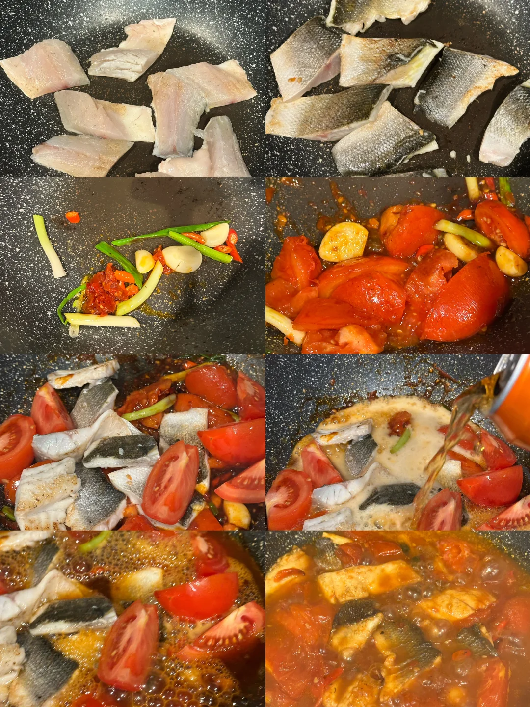 锅里少量油,鱼皮朝下煎到金黄后翻面再煎断生,取出备用;
