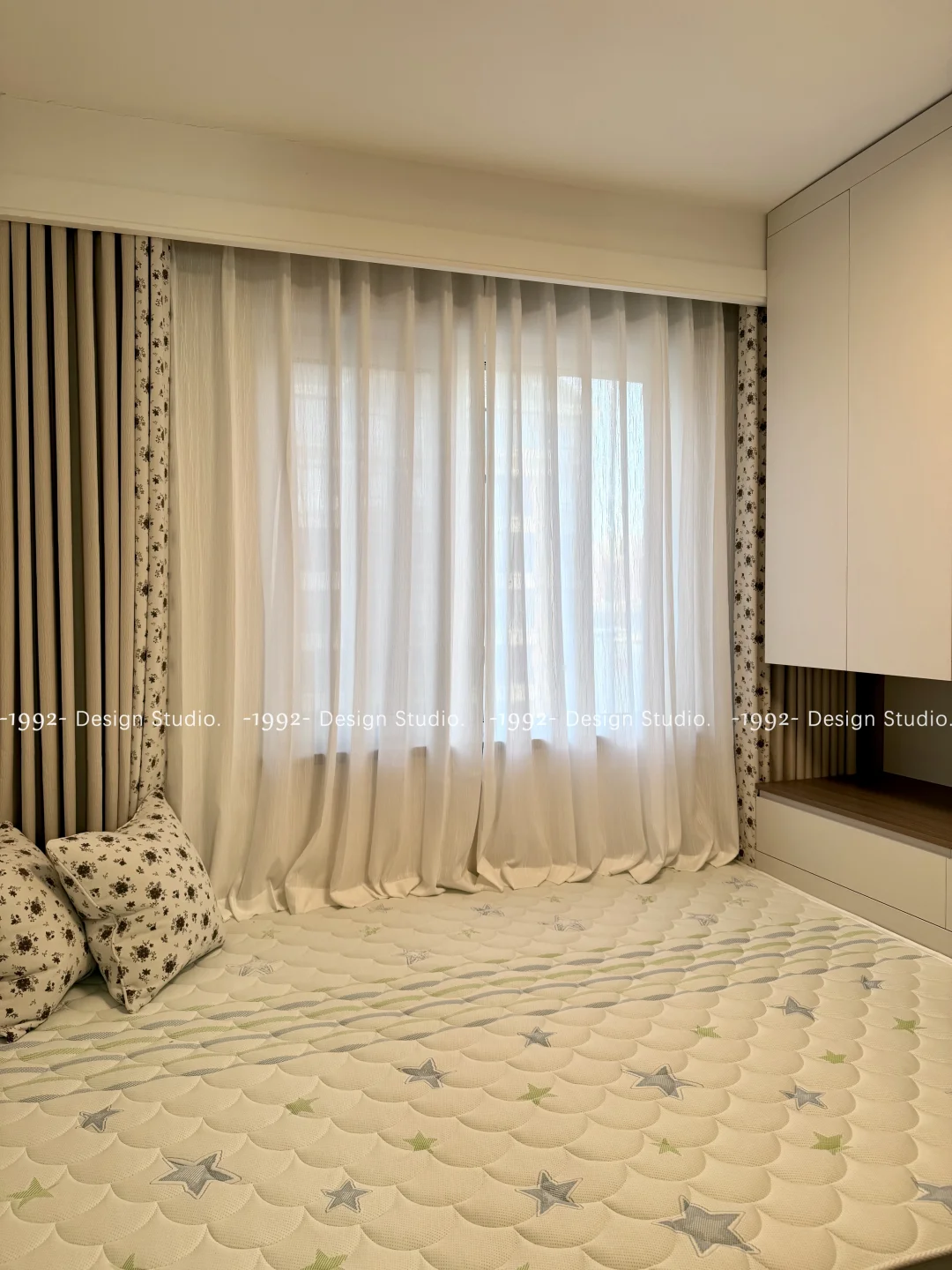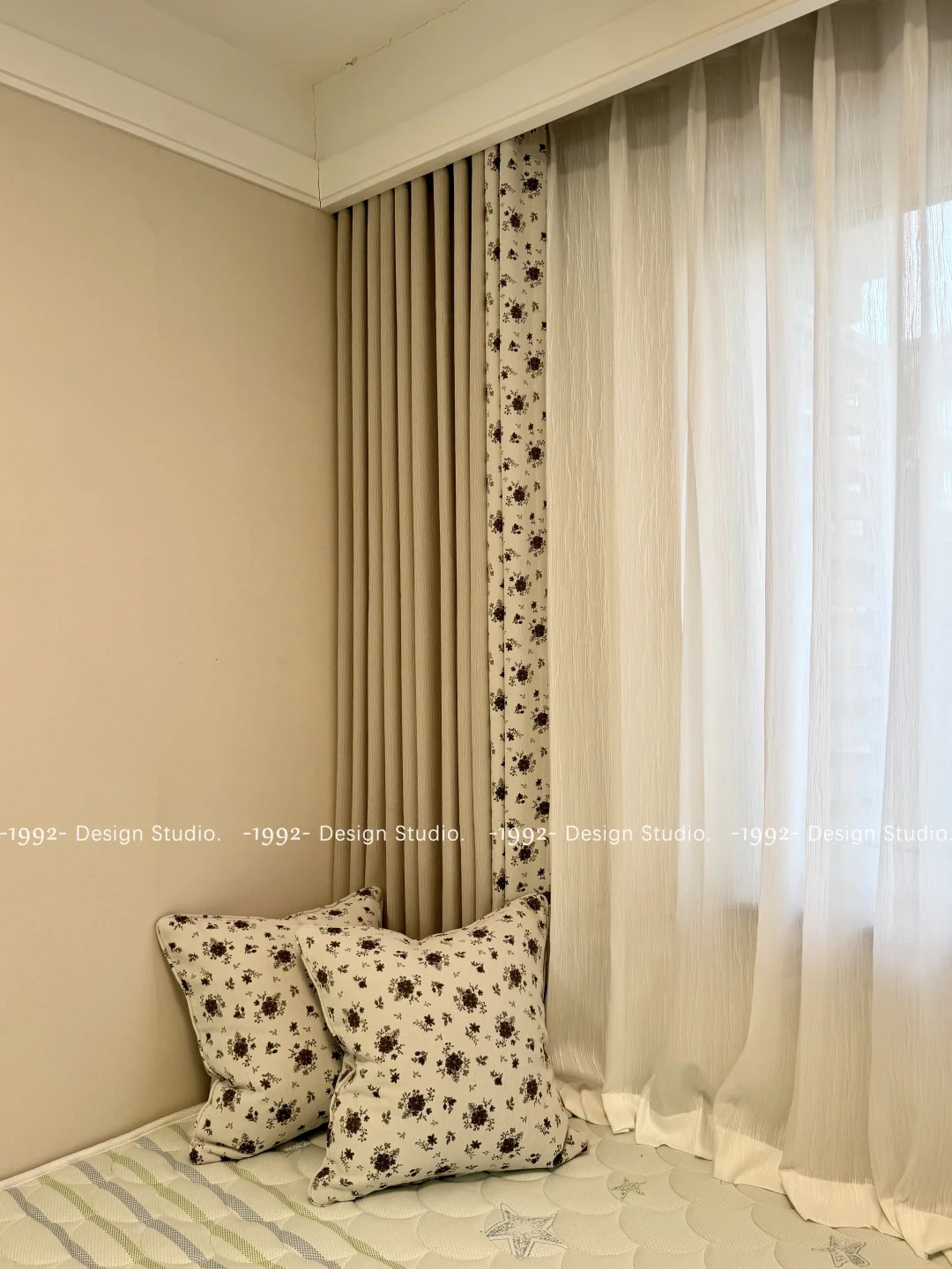 [种草R]北方的冬天冷的时候气温能达到零下20度甚至更低[笑哭R] [种草R]所以在窗帘的选择上尤其北边卧室,没有阳光照射,北风,墙体变凉,所以窗帘的材质可以选择相对厚实一点的[派对R]还有就是窗帘的高度可以做长一些,堆起来,这样可以有效的防止冷风直接进入[赞R] [种草R]我们自己的客户可以免费改帘,等到冬天过去可以在改回合适高度[斜眼R]
