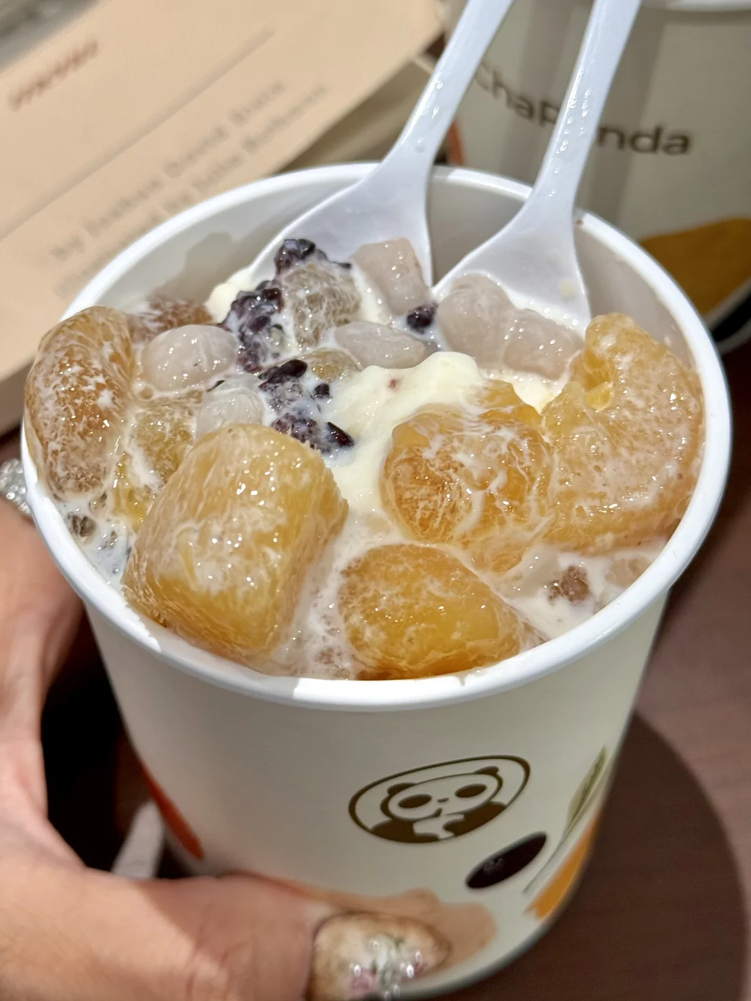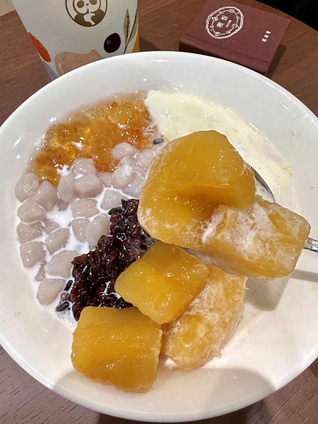 木薯芋圆血糯米奶麻薯桃胶,一碗满满的五种小料!全是糯唧的,一口下去真的太扎实了🤤🤤纯奶底很对本人的糖水胃~