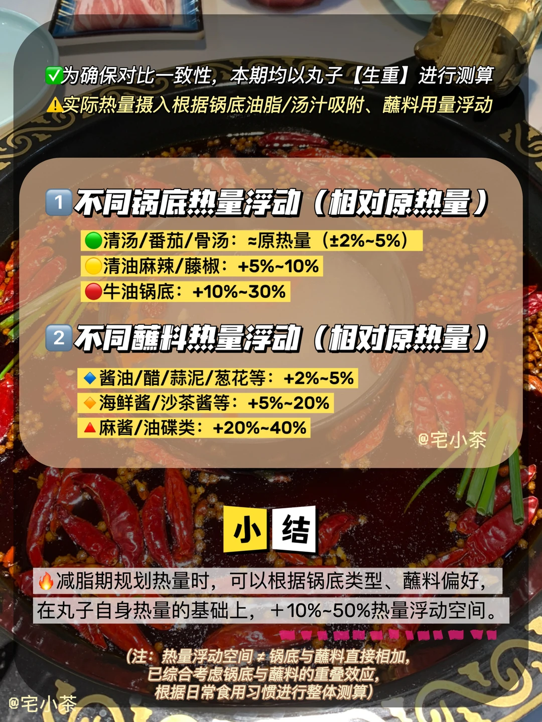 哈喽大家好呀,本期是火锅丸子热量第2⃣️弹! 同样的,单个热量/100g/100大卡/三大营养素都标注在图里了,可以直接查看。 · ✅为确保对比一致性,本期均以丸子生重为基准进行测算。 ⭕️实际热量摄入会因锅底油脂/汤汁吸附、蘸料用量等产生浮动,计算方式详见图10。 · 👉🏻本期丸子包括: ➡️手工鱼皮饺 ➡️V形仿蟹肉 ➡️虾滑球 ➡️包心鱼丸 ➡️鳕鱼芝士包 ➡️甜不辣 ➡️夹心仿蟹排 ➡️芝士年糕
