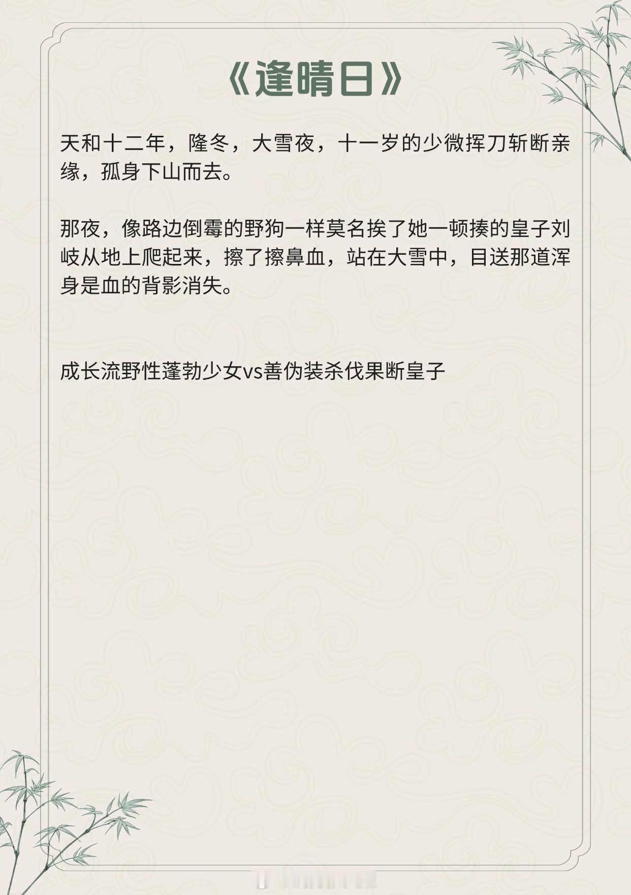 【高质量古言】无人扶我青云志,我自踏雪至山巅。《逢晴日》作者:非10《惊山月》作者:冬天的柳叶《问山河》作者:寻找失落的爱情《好时节》作者:姚颖怡《京师无人生还》作者:时音《四合如意》作者:云霓推文言情小说推荐推文