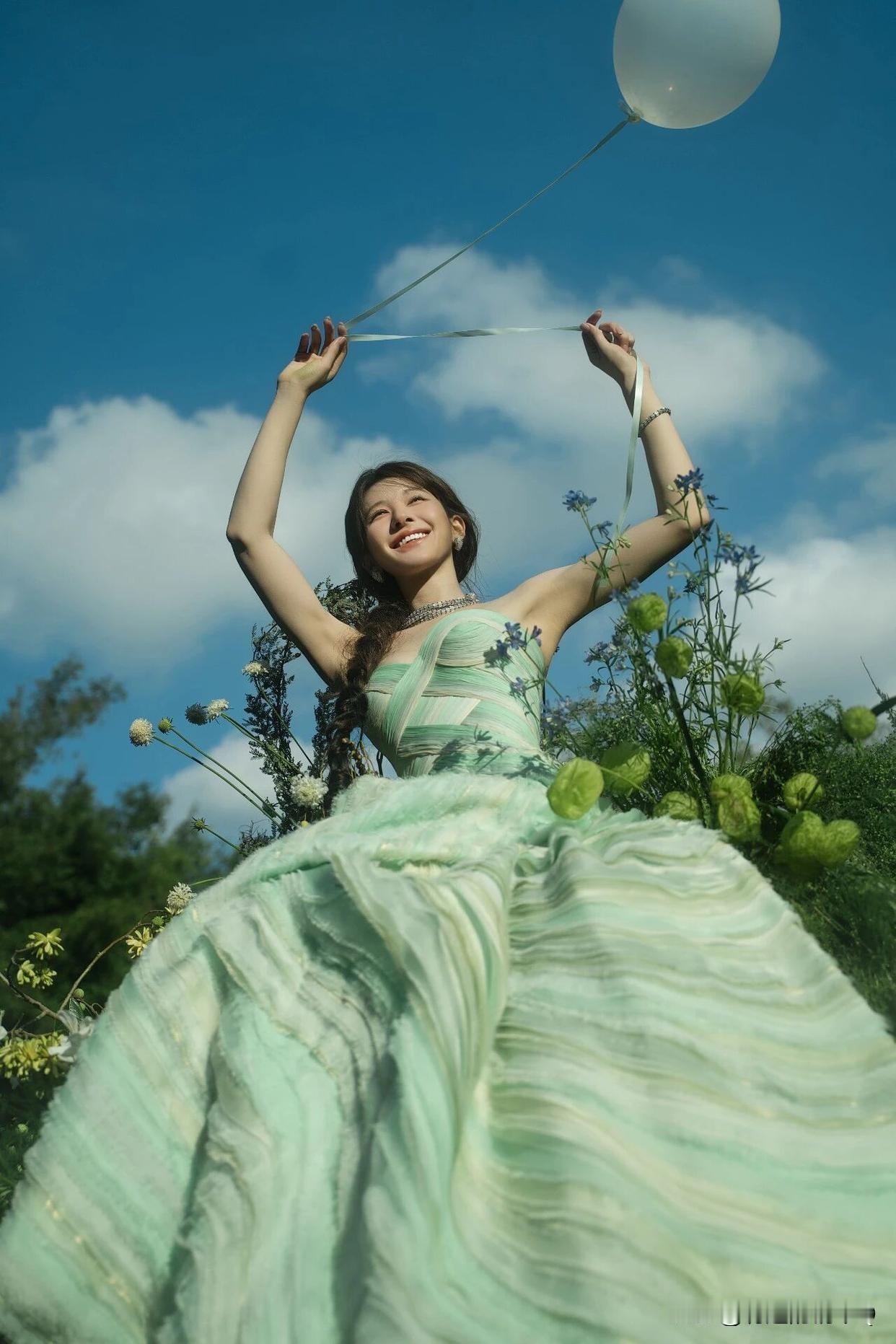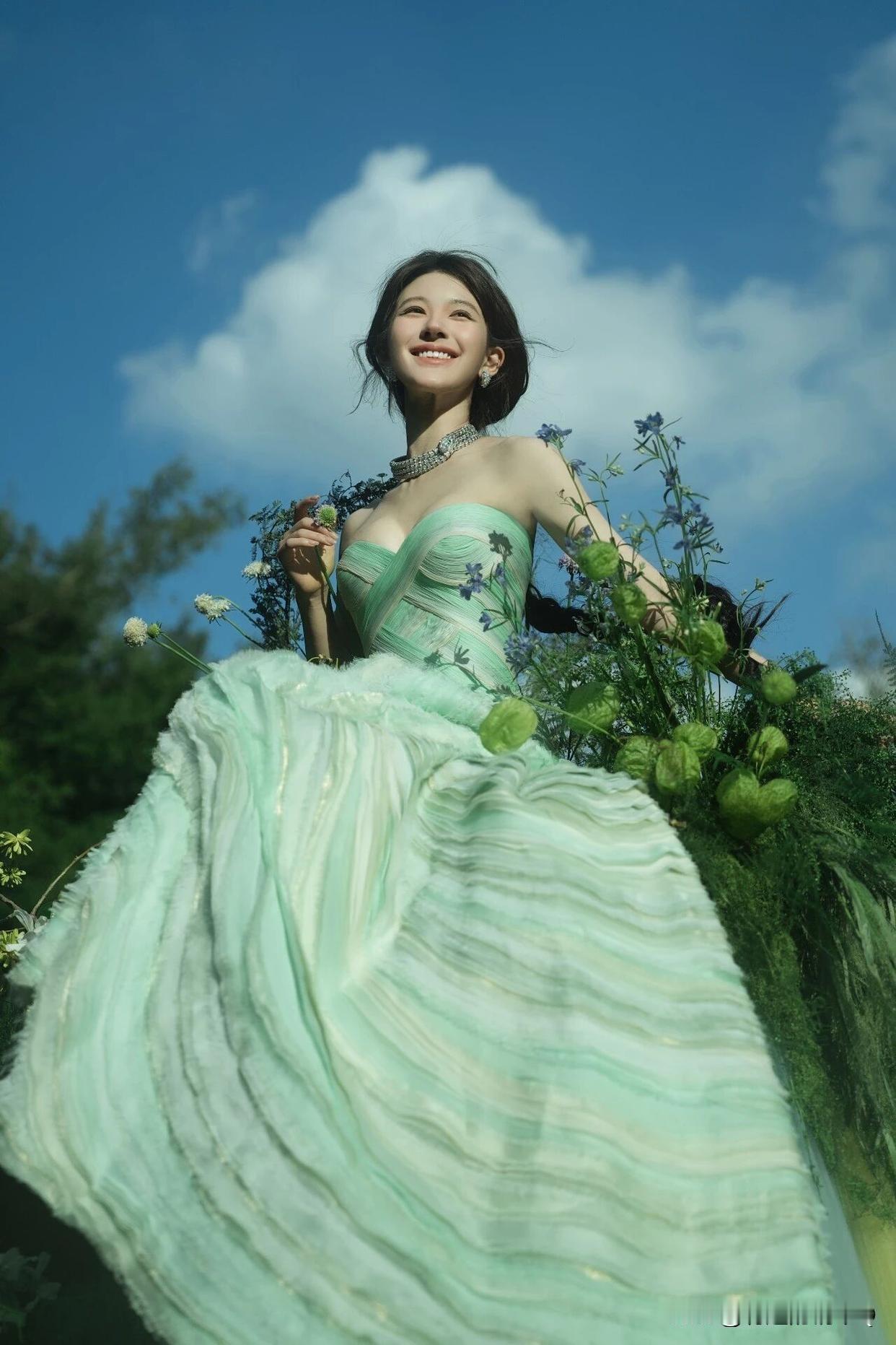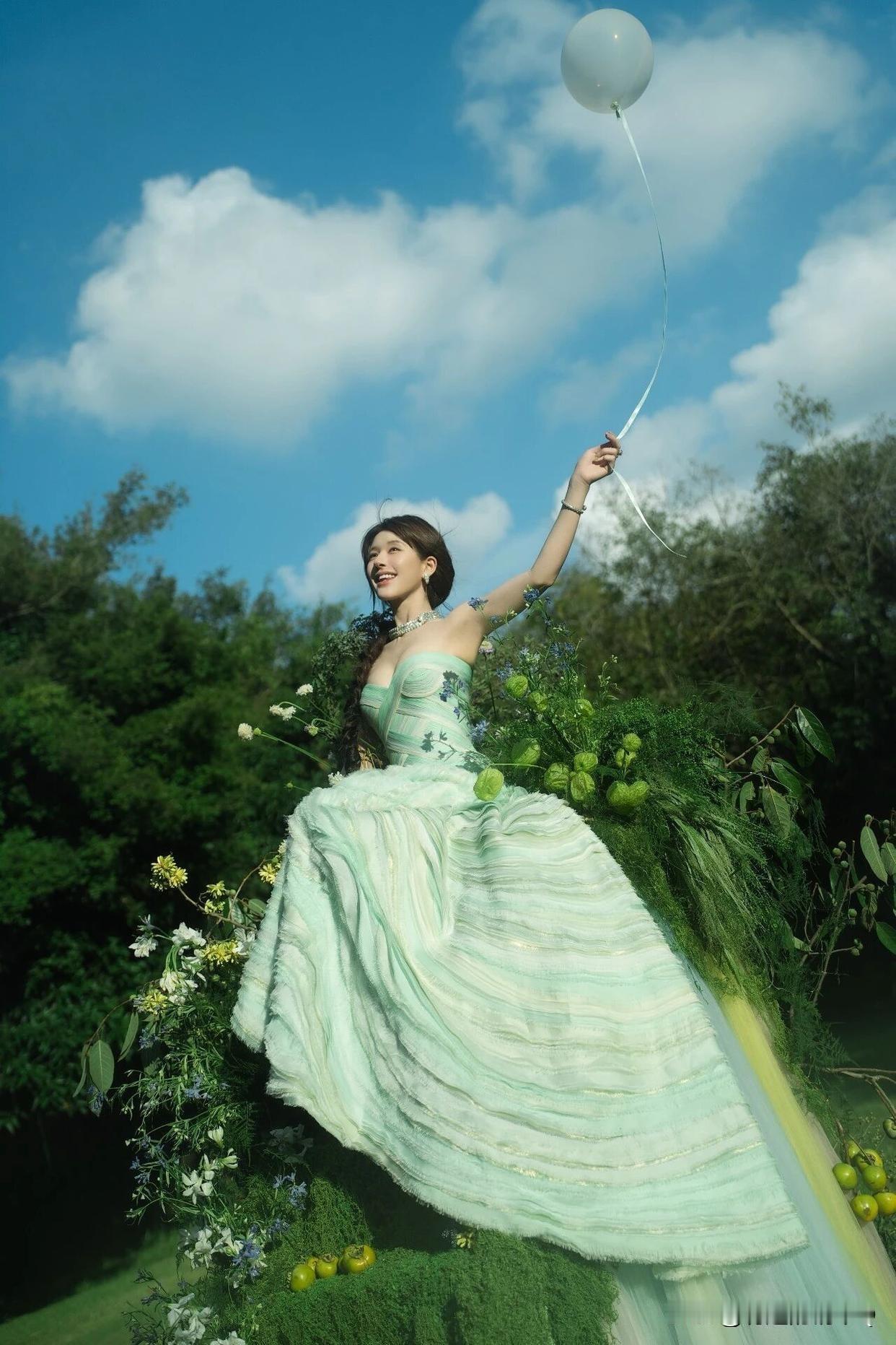 赵露思 绿光森林,甜系裹胸裙花园写真