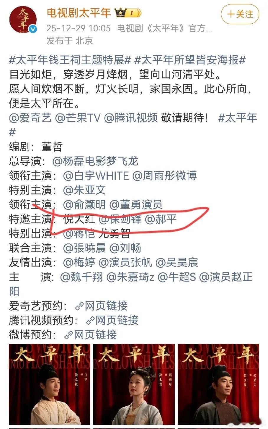 保剑锋以后 可能很接到戏了《太平年》已经不带他玩了,12月份官宣预约的时候还有他。开播了直接把他除名,宣传根本不带他,被前妻爆料出轨,十几年前的恩怨谁也不说不清楚,明面上没事。真实的是,他本人演技一般,又没有什么经典角色,流量没有,可替代性太高了,剧组没必要冒着风险找他。还是那句做人留一线,前妻不是被逼无路也不会出来爆料。