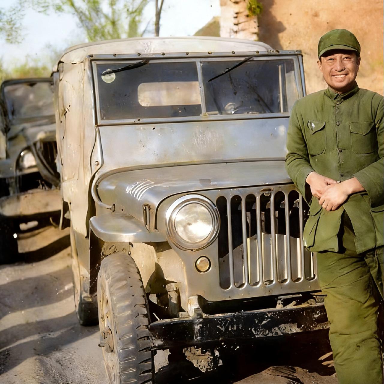 1948年,陈赓将军和一辆威利斯吉普车,一张罕见的留影,照片中的他穿着一件朴素的