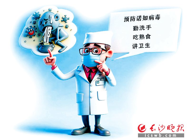 预防的关键在于切断传播途径,牢记“勤洗手、吃熟食、讲卫生”。饭前、便后、加工食物前,用肥皂或洗手液在流动水下洗手20秒以上;喝开水,不饮用生水,不食生冷食物,吃彻底煮熟的食物(特别是贝类等海产品),生吃瓜果要洗净去皮;家庭环境勤通风,对门把手、水龙头等要定期进行清洁;如家人呕吐或腹泻,应立即用一次性吸水材料蘸取含氯消毒液覆盖清理,清理时戴好口罩和手套,处理后认真洗手。