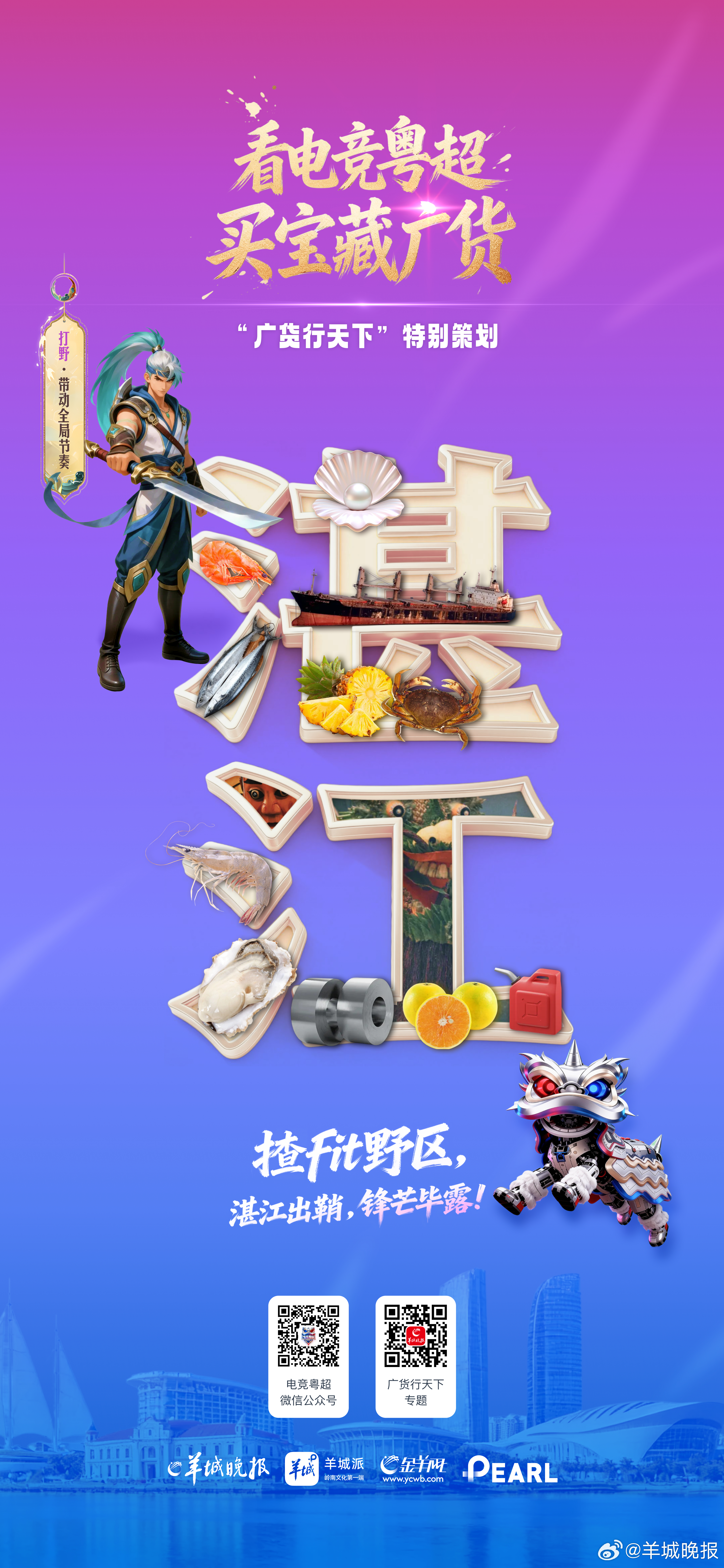 【看电竞粤超,买宝藏广货 | 粤西豪强,生猛硬净,搞定全场!】他们自带“生猛硬净”的独特气场!湛江“揸FIT野区”锋芒毕露,茂名“荔城猛火”全力开火,阳江“破阵硬撼”一刀搞掂,云浮“终局哨卫”稳过泰山。粤西文化赛区,将海洋的生猛能量与山石的坚韧不拔,灌注于对虾、荔枝、五金刀剪、石材工艺等每一件“粤西造”好物中,既是生活中的惊喜,也是最可靠的保障。“够生猛,够硬净,有我喺度,一定搞掂!” #广东省首届电子竞技超级联赛##电竞粤超##广货行天下##首届电竞粤超来了##call友齐撑首届电竞粤超#(编辑:郑宗敏;审签:岑杰昌)