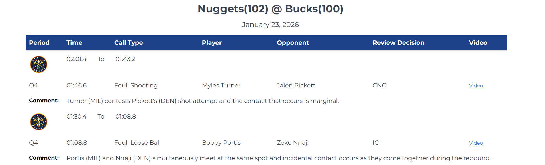 今日NBA官方出具了该场比赛的裁判报告,比赛最后2分钟共有1次误判: