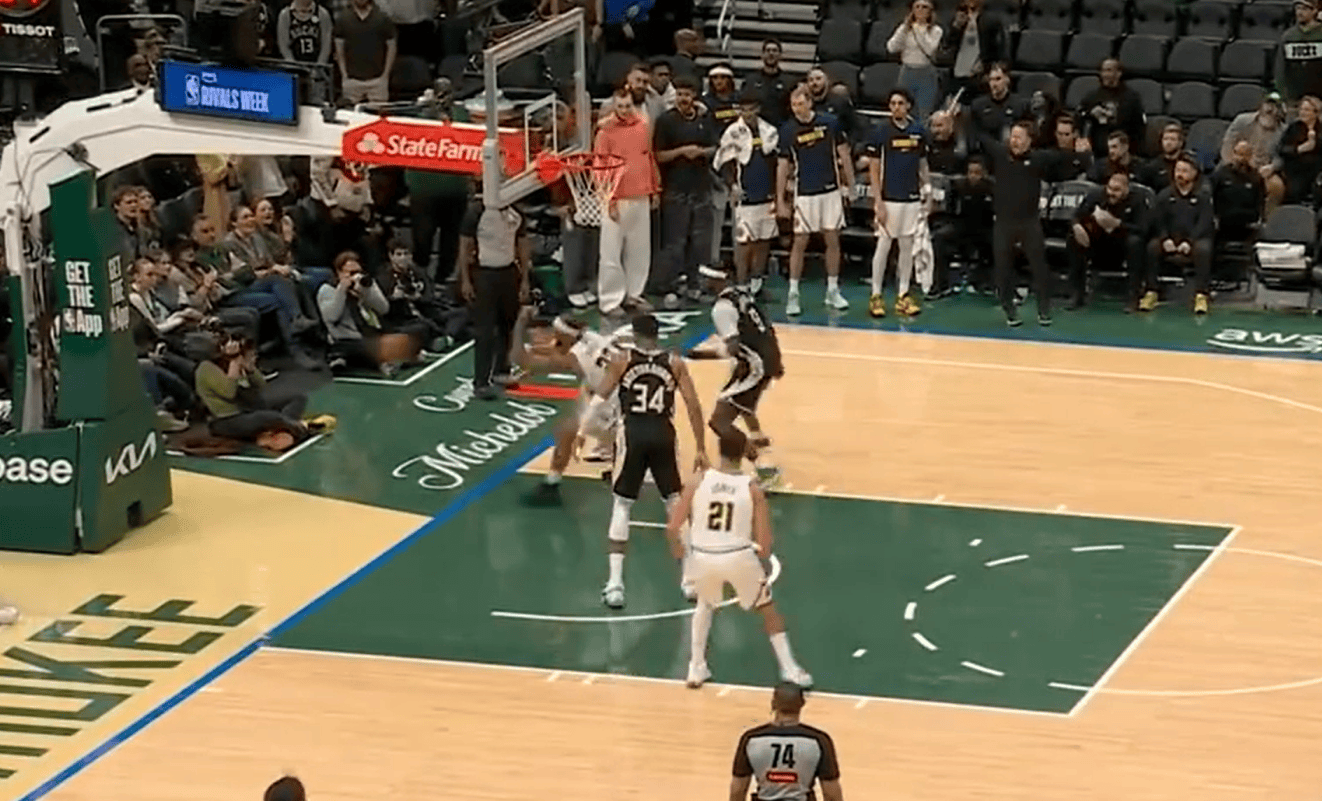 -最后1分08秒时,波蒂斯与纳吉二人同时到达抢球点,随后二人在争抢球时发生了意外的身体接触,该球不应吹罚波蒂斯对纳吉的争抢球犯规。