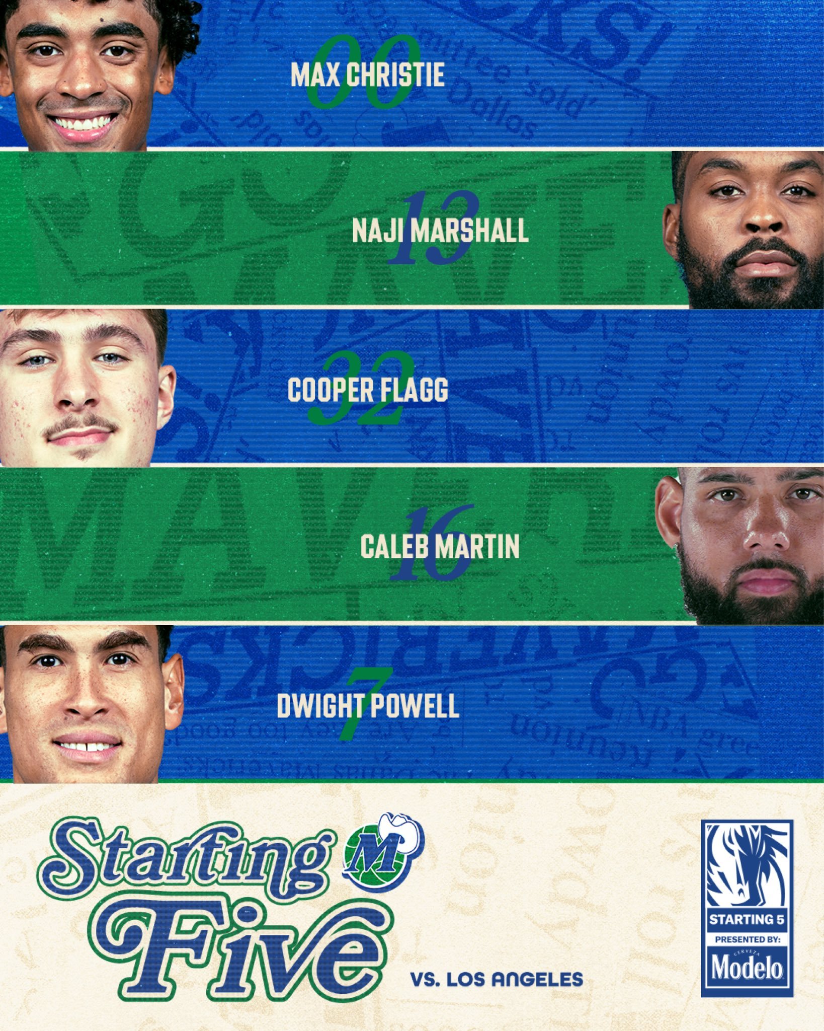 首发名单和上一场相同。加福德复出,但像上一场基德赛后说的一样,他还是让鲍威尔继续首发。小旗今天有 30 分钟出场时间限制。NBA常规赛 独行侠vs湖人