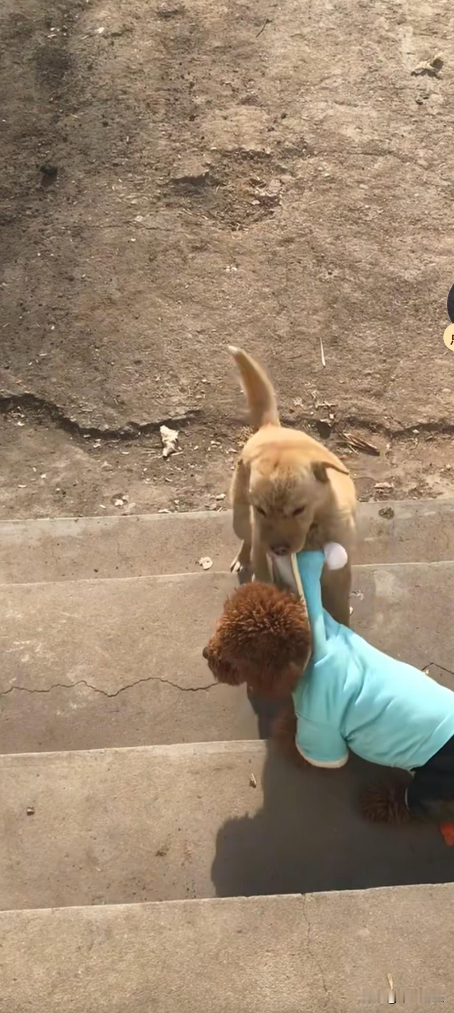 泰迪在家常常狂妄自大,觉得自己是老大,无人能敌。这次主人带它回老家,遇到一只田园狗。田园狗可不惯着它,泰迪敢挑衅它的底线、目中无人,田园狗直接咬住它的皮毛撕扯甩摔,让它连反抗的机会都没有。这下泰迪慌了,夹着尾巴赶忙找主人护着。泰迪狗
