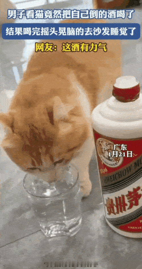 广东茂名,男子周末在家休息,就想着喝点酒放松一下,没成想,刚把茅台拿出来倒上一杯,家里的小猫就跳上桌子喝了起来,结果喝了几口直接迷糊了,摇头晃脑地走到沙发上自己睡觉去了。网友:这猫的酒品不错。 周末午后,男子趁着休息时光小酌一杯放松放松,他取出珍藏的茅台,小心翼翼地倒了满满一杯,这时家里的小猫突然蹿了出来,跳上餐桌,凑到酒杯旁。 没等男子反应过来,小猫便伸出舌头舔了起来,一口接一口喝得津津有味。“当时都看呆了,没想到它这么大胆,还敢喝白酒。”男子笑着回忆,他本想立刻制止,但看着小猫好奇又投入的模样,便想着让它尝几口就好,没料到小猫一连喝了好几口。 喝罢,小猫的反应让男子忍俊不禁,见它眼神逐渐迷离,走路开始摇摇晃晃,在餐桌上打了个转,随后跌跌撞撞地跳下桌子,慢悠悠走到沙发旁,一头栽倒在软垫上,蜷缩成一团呼呼大睡起来。 网友:“这猫是懂享受的,直接对标茅台级待遇”,还有人留言:“喝多了不吵不闹,自己找地方睡觉,这酒品不错”。