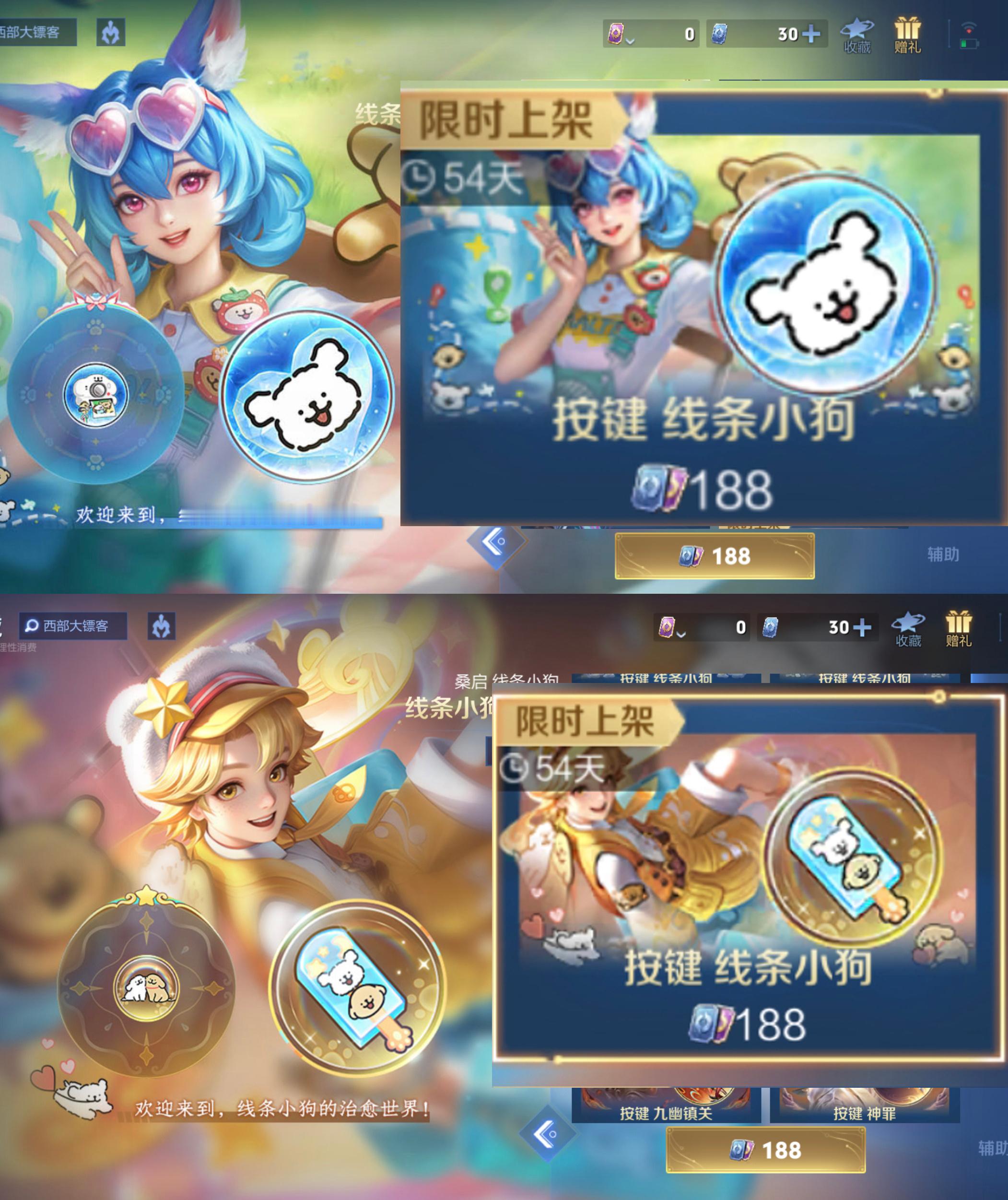 线条小狗的皮肤好可爱~真是受不了限时两个字。王者荣耀 王者荣耀 王者周瑜小乔线条