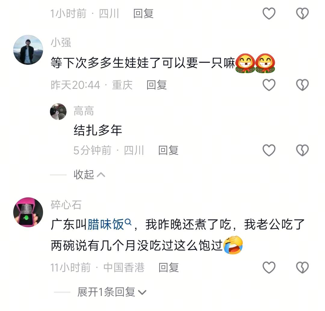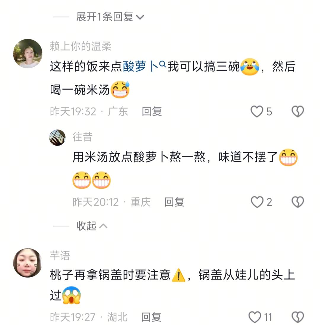 现在全网最后悔的男人就是渝乡桃子了吧! 不是因为拍视频没人看也不是因为腊肉没有人买而是因为煮煲仔饭竟然叫玲子帮手,差点烧糊了 本来只是随手刷短视频,结果刷到渝乡桃子做广东腊味煲仔饭,直接被勾住走不动道了,说实话,就冲那锅焦香的锅巴,我直接原地喊万岁!想起自己上次在家复刻煲仔饭,直接把锅巴煮成黑炭,整个人都崩溃了,同款厨房翻车谁懂啊? 桃子和玲子俩人配合做煲仔饭也太默契了,先泡米再切腊肠腊肉,一片一片铺在米上,然后桃子还特意叮嘱玲子火别太大,怕烧焦,细节感拉满。完了桃子去田里摘小白菜,河边洗一遍,玲子又用自来水冲一遍,我晕,人家洗个菜都这么讲究,我平时随便冲两下就扔锅里,难怪做出来的味道差远了。小白菜铺在腊肉旁一起煮,饭熟了用铲子一拌,锅巴直接出来了,桃子说锅巴是灵魂,那必须的!这锅巴看着也太给力了,完美到我想直接端碗开吃。本来我还想跟着视频直接复刻,后来发现人家控火、洗食材都超细致,我那随便煮煮的做法,不翻车才怪。 本以为看个做饭视频就完了,结果点开评论区,我和小伙伴都惊呆了,直接从做饭现场变大型唠嗑现场,瞬间觉得之前刷不到好玩的视频太无聊了。有网友安利老家的箜干饭,列了一堆配菜,还说米要滤硬点,还有广东网友说这就是腊味饭,自家做的超香;不是吧?居然还有人操心桃子妈妈烫头,还催桃子生二胎,这脑洞也太大了。还有懂行的网友支招,说快起锅沿锅边淋圈油,锅巴能成整张,香十倍,别人还说这评论区的状态就是佛系看视频,看个做饭能扯出这么多话题,胡扯又莫名有意思。 总之,我想说的是,煮煲仔饭全程别开大火,不然锅底必焦;青菜洗干净后别煮太久,不然会烂掉没口感;最重要的是,快出锅沿锅边淋一勺食用油,锅巴绝对焦香不糊,唔该一定要记好咯!做出来绝对封神!!