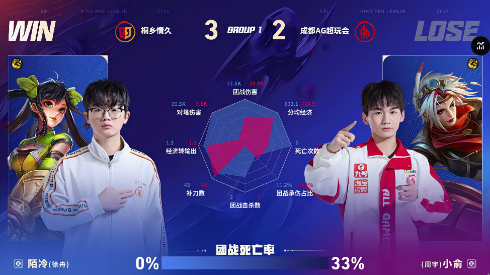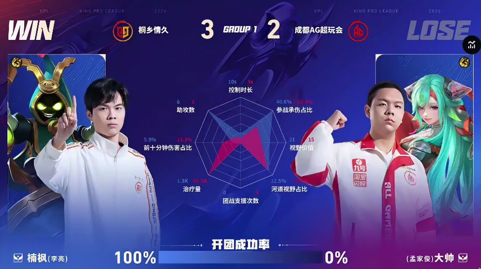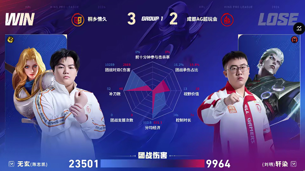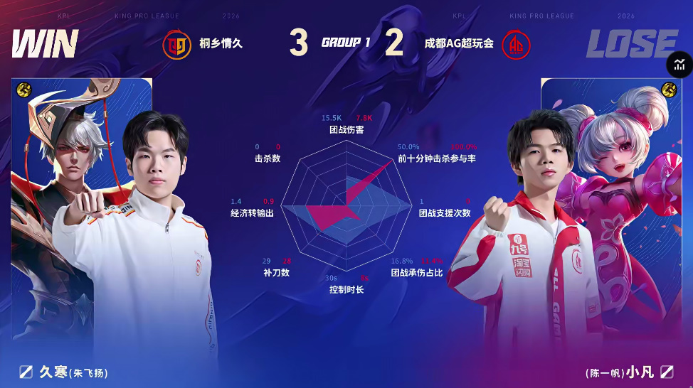 AG/情久第五局数据对比:陌冷孙尚香输出伤害高达31%