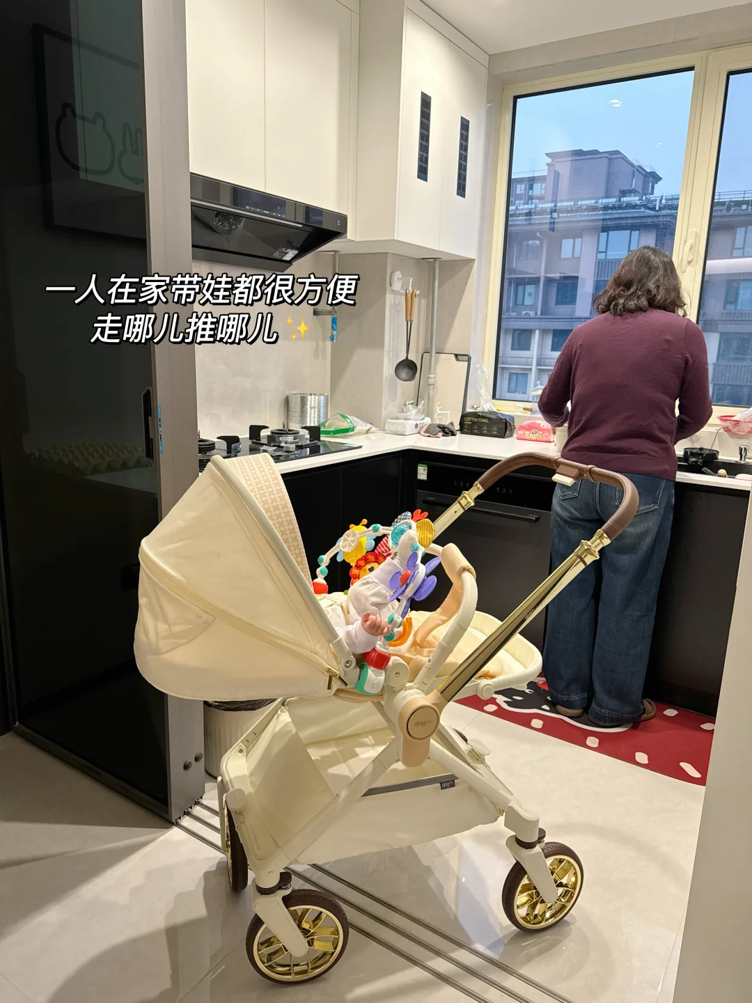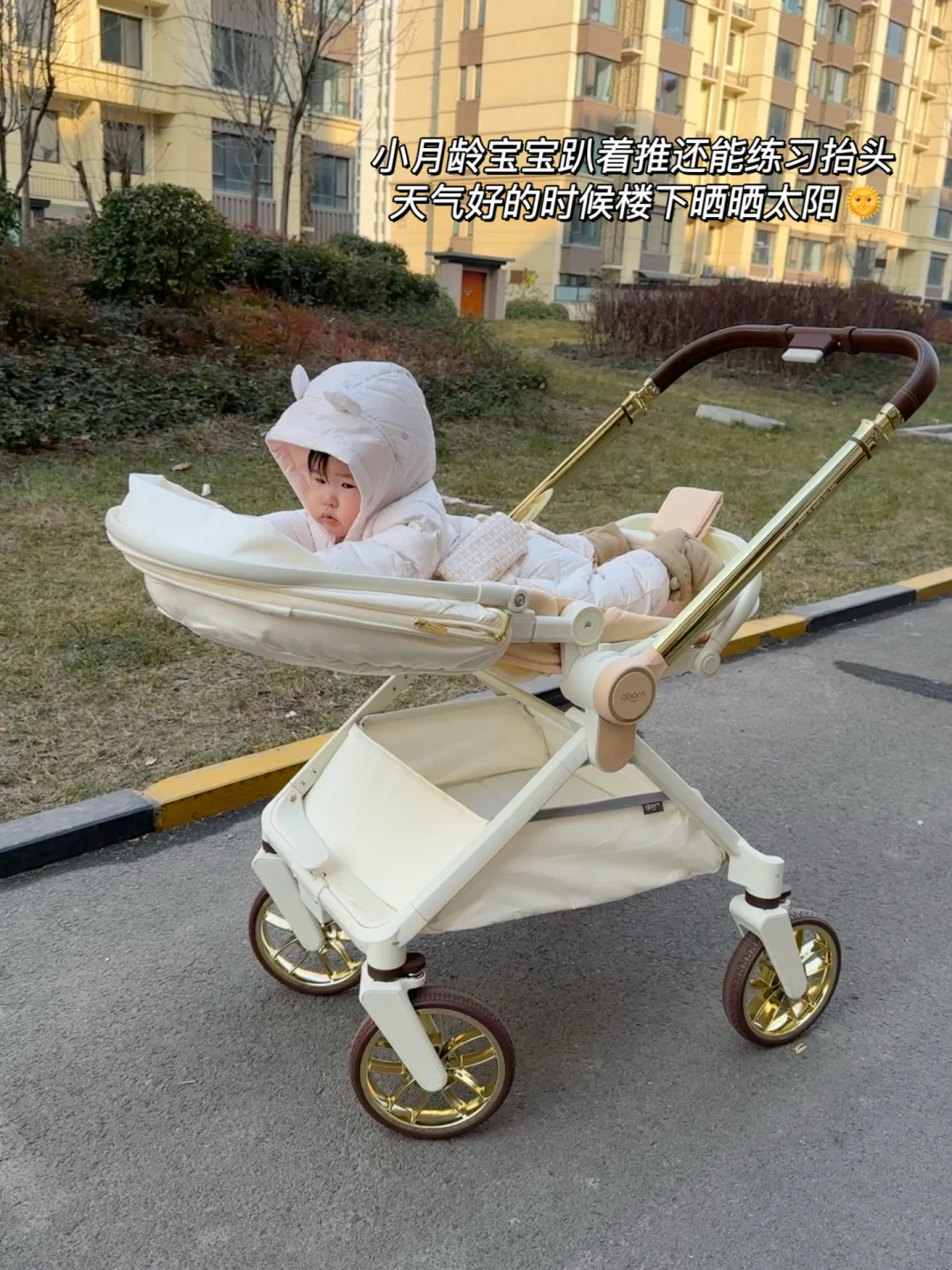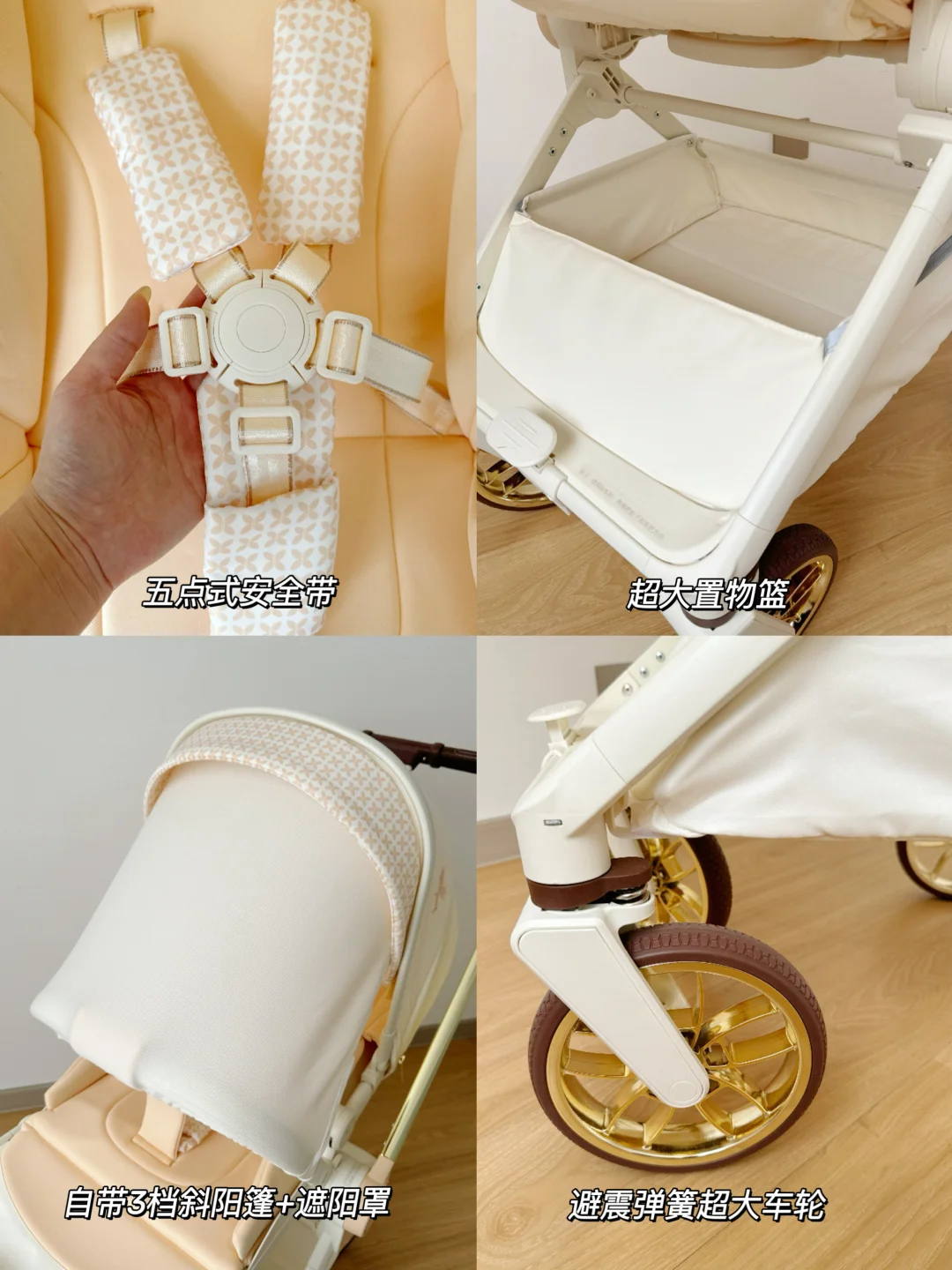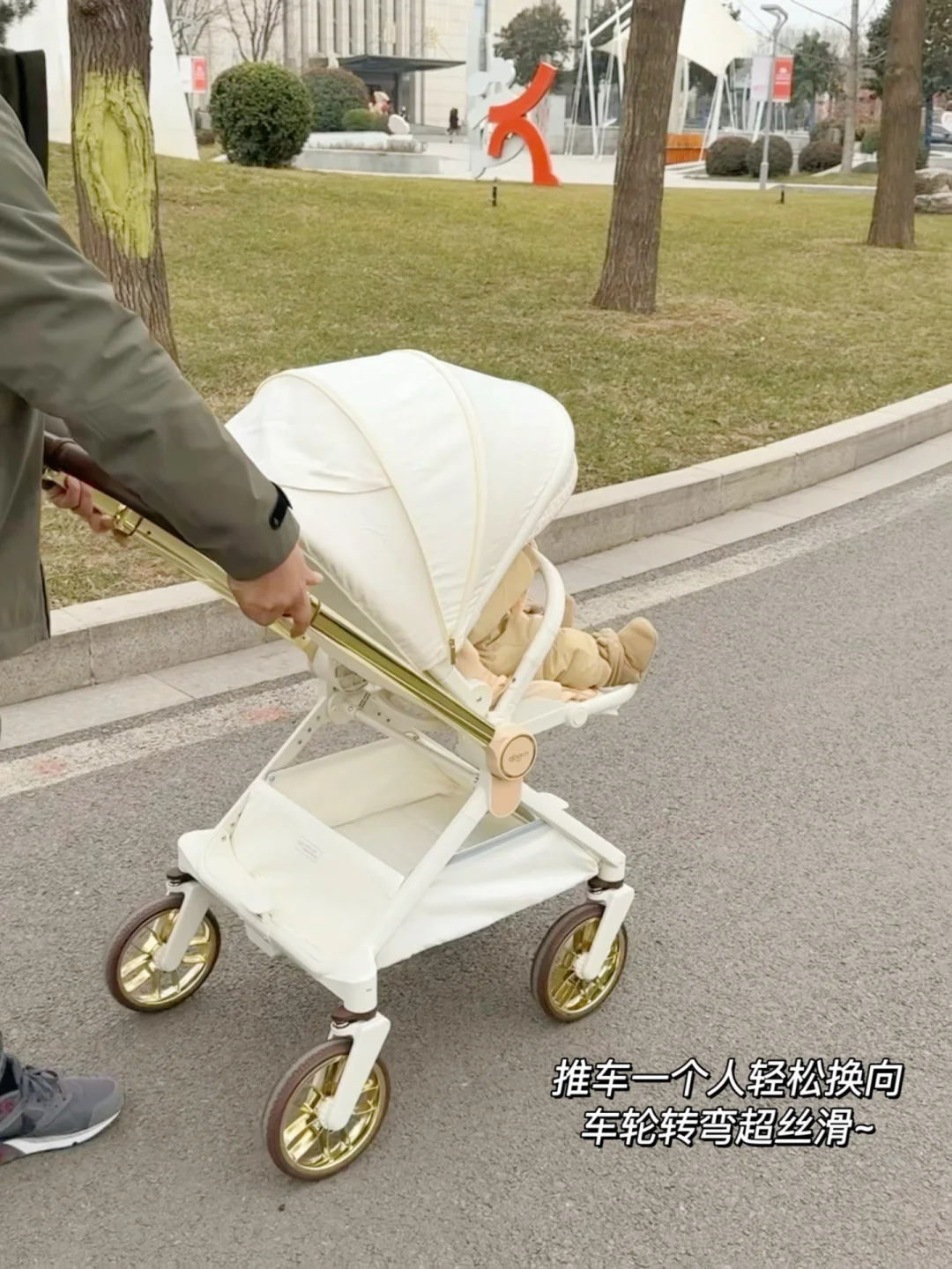 关键是很稳当!不会左摇右晃的,推过石子路、石板路都平稳不颠簸,宝宝在里面睡觉也不会惊醒💤