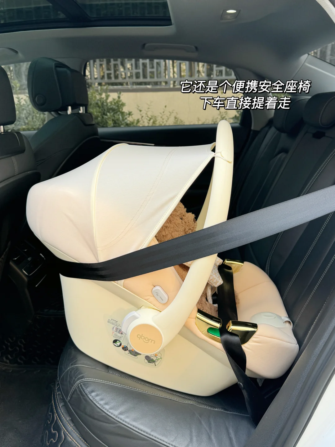 提篮就直接当安全座椅用,坐车不用额外折腾,宝宝出院、42天做儿保、小月龄时期打疫苗啥的也都能用
