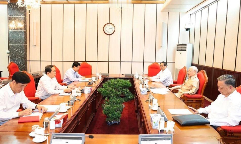 关键性人物!在2024年6月12日阮富仲去世前召开的为数不多的会议上,除了四驾马