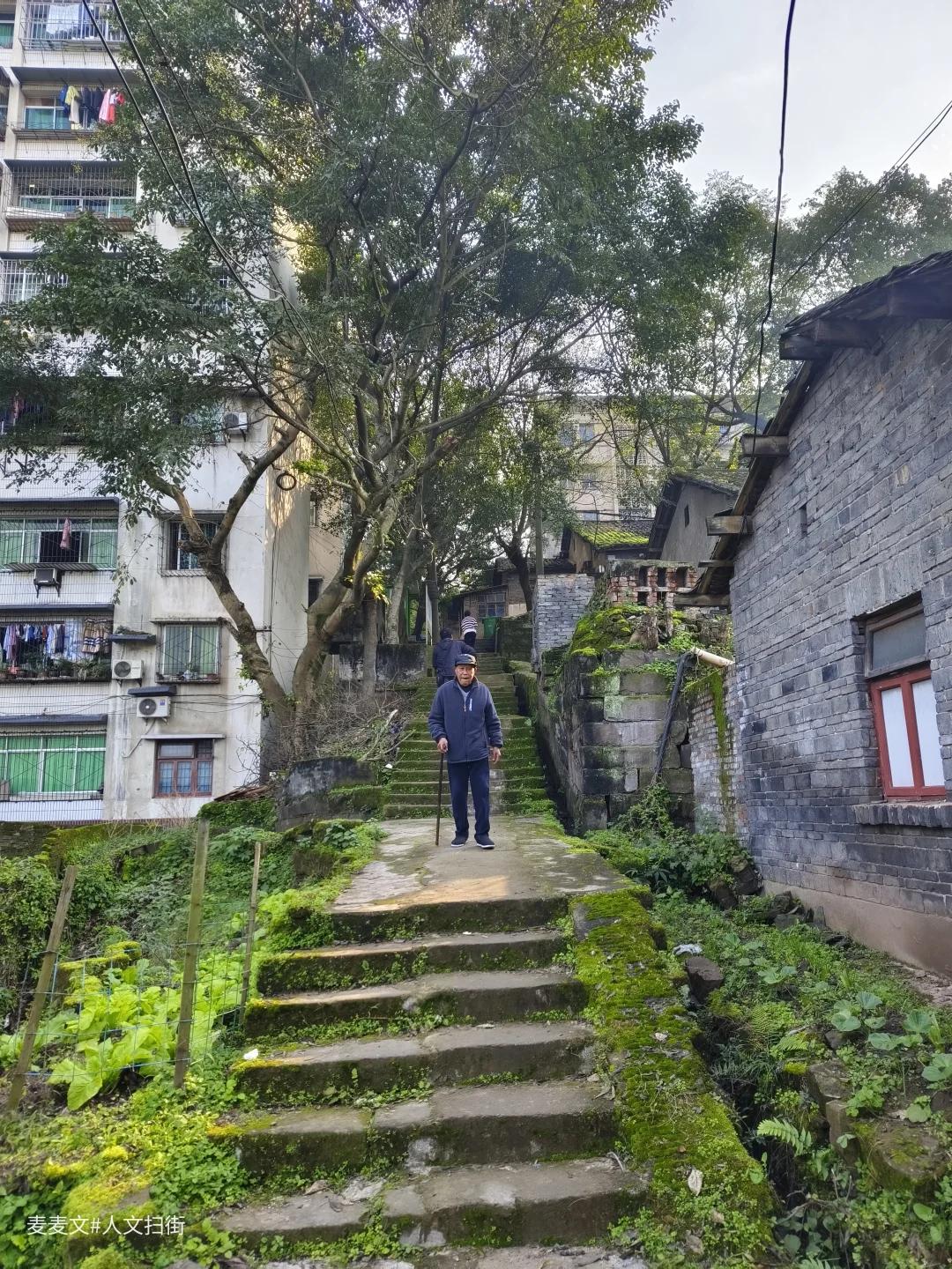 走进长寿化工总厂的老家属区友谊村,青苔爬满的灰瓦屋顶、斑驳的青砖平房,还有纵横交错的电线与爬满藤蔓的墙,每一处都刻着老厂家属院独有的印记。 窄巷里,阳光穿过梧桐叶洒在长满青苔的石板梯坎上。老旧的筒子楼旁,是居民们种的小菜园。远处的红砖厂房与眼前的平房相互映衬,仿佛还能听见当年厂区的汽笛声。 竹椅、热茶,还有屋檐下晾晒的衣物,都在诉说着几代长化工人的青春与乡愁。这些即将消失的老平房,是重庆工业时代的活化石,也是藏在长寿人心底最柔软的旧时光。