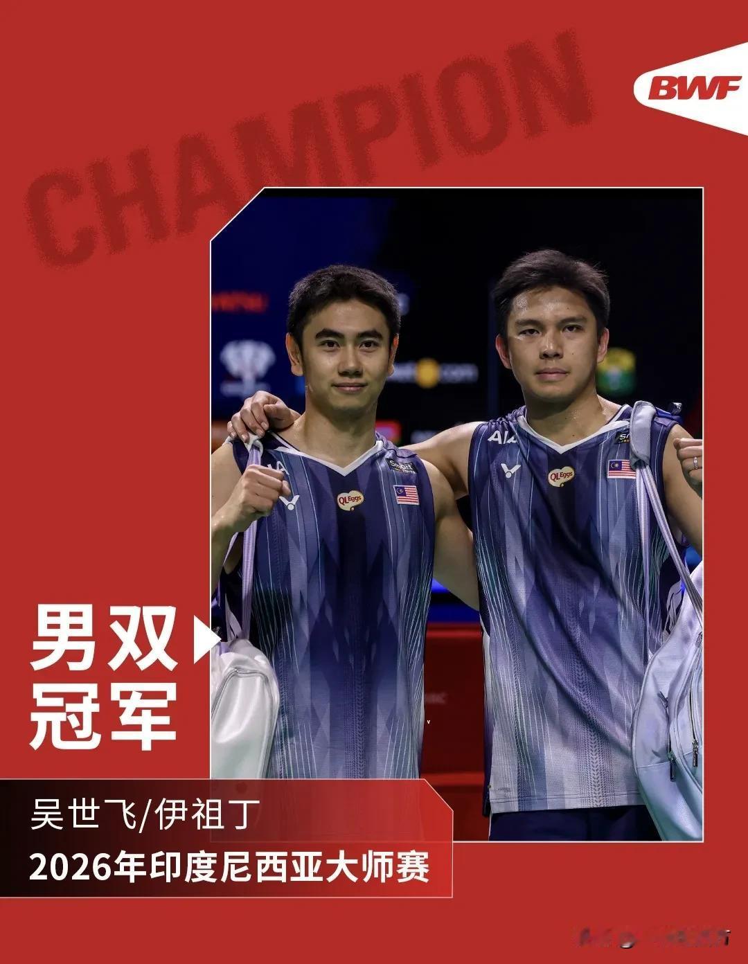 随着印尼羽毛球大师赛压轴进行的男双决赛,马来西亚组合吴世飞/伊祖丁以21-19、