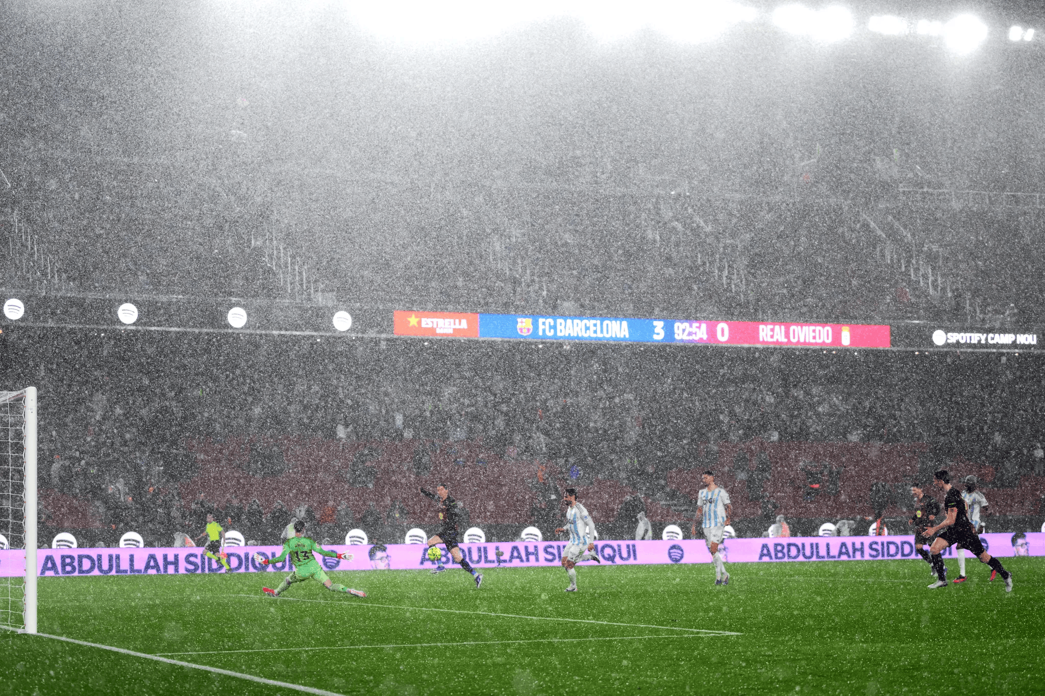 虎扑01月26日讯在此前结束的一场西甲比赛中,巴萨3-0击败皇家奥维耶多。据媒体报道,本场比赛天降大雨,雨水如瀑布般倾泻而下,诺坎普球场出现了漏水的情况。