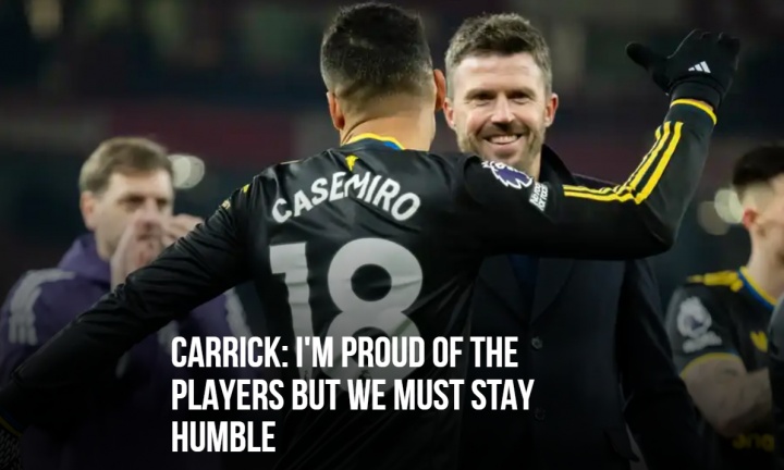 直播吧01月26日讯英超第32轮焦点战,曼联客场3-2绝杀阿森纳。赛后曼联主帅卡里克表示,为球员自豪,但须保持谦逊。