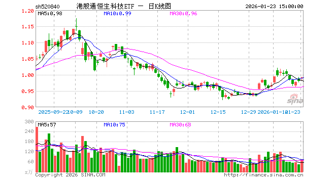 1月23日,港股通恒生科技ETF(520840)涨1.12%,成交额7062.35万元。当日份额减少1100.00万份,最新份额为11.87亿份,近20个交易日份额增加3400.00万份。最新资产净值计算值为11.87亿元。