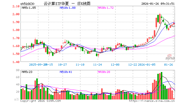 1月26日,云计算ETF华夏(516630)开盘涨0.00%,报1.865元。云计算ETF华夏(516630)重仓股方面,科大讯飞开盘涨1.62%,金山办公涨1.71%,中际旭创跌0.85%,新易盛跌0.84%,浪潮信息涨0.32%,中科曙光涨0.39%,紫光股份跌0.11%,恒生电子涨0.15%,润泽科技涨4.70%,拓维信息跌0.24%。