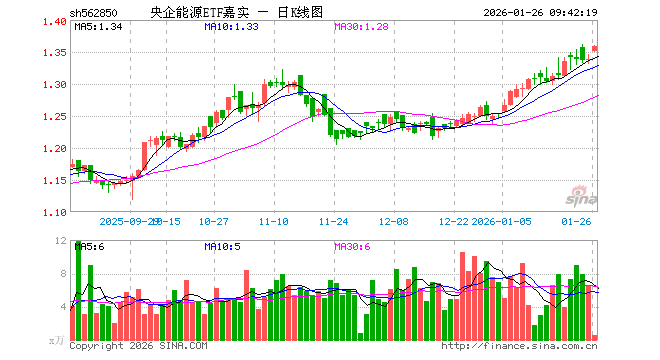 1月26日,央企能源ETF嘉实(562850)开盘涨0.90%,报1.351元。央企能源ETF嘉实(562850)重仓股方面,长江电力开盘涨0.19%,中国铝业涨1.74%,国电南瑞涨0.51%,中国核电跌0.11%,云铝股份涨1.10%,三峡能源跌0.24%,中国石油涨0.71%,中国海油涨1.59%,国电电力涨0.21%,中国电建涨0.17%。