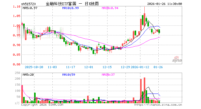 金融科技ETF富国(515720)业绩比较基准为中证金融科技主题指数收益率,管理人为富国基金管理有限公司,基金经理为殷钦怡,成立(2025-09-22)以来回报为-2.11%,近一个月回报为11.67%。