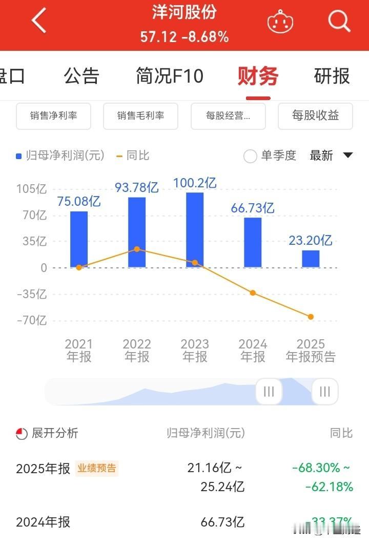 【白酒龙头破位!】洋河股份2025年业绩暴雷,净利润暴跌超60%,四季度单季亏损16亿,股价一根长阴线跌破关键支撑位。公司主动“去库存”战略导致短期收入锐减,分红政策从保底70亿改为净利润100%分配,引发市场对现金流紧张的担忧。新管理层改革阵痛期,行业竞争加剧下转型前景待观察。