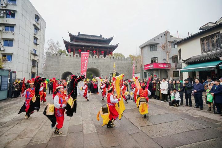 寒风裹着腊八的甜香掠过青石板路,虾灯表演、舞狮与竹马的欢腾声响彻街巷……