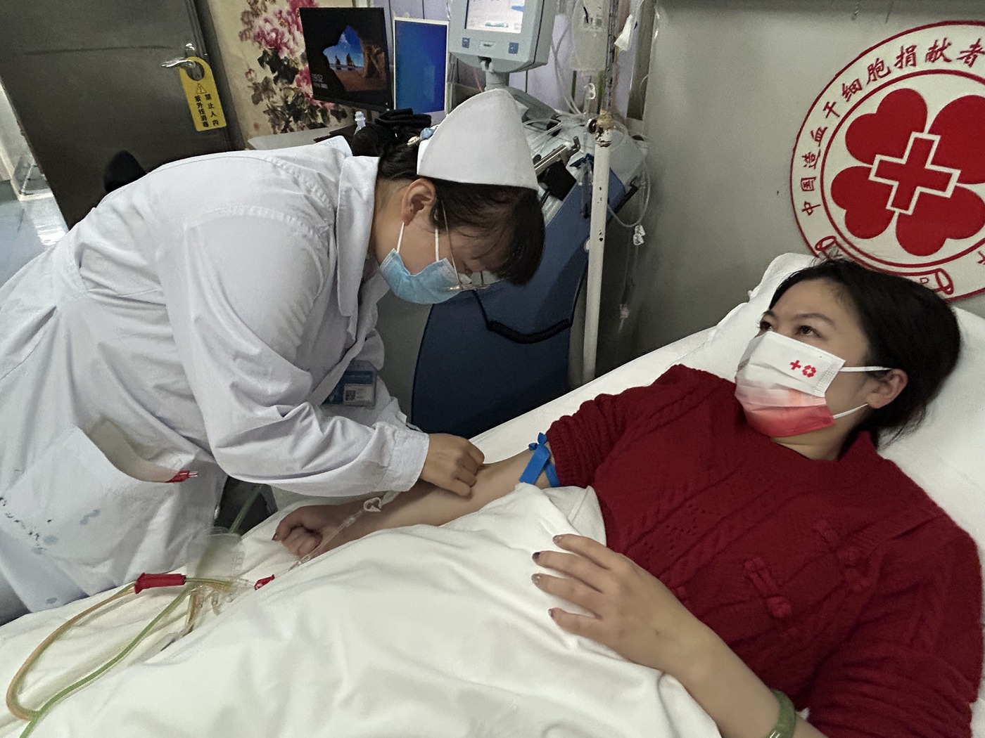 爱心接力就此拉开,江城县红十字会接到消息后,立刻行动起来,赶紧联系了市红十字会和中华骨髓库云南分库,抓紧办审批、解读政策这些事。工作人员还专门跑到小袁的单位,仔细说明捐献造血干细胞是科学、安全的,让单位放心,顺利帮她协调好了假期,让她能安心去捐献。红十字会党员同志主动申请陪同,一对一照顾——不管是坐车、住的地方、吃饭,还是捐献前帮她放松心情,捐献后照顾她恢复,让小袁没有半点后顾之忧。